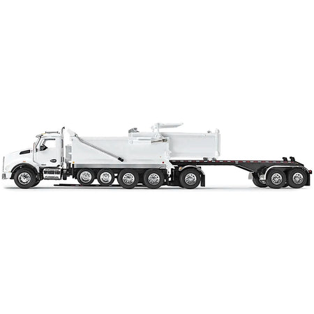 Kenworth T880 Quad-Axle Dump Truck and Rogue Transfer Tandem-Axle Dump Trailer Viper White 1/64 Diecast Model by DCP/First Gear
