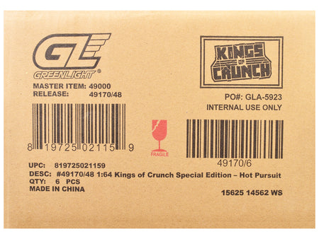 - Brand new 1/64 scale diecast car models of "Kings of Crunch - Hot Pursuit" Special Edition Set of 6 Monster Trucks die cast model cars by Greenlight.