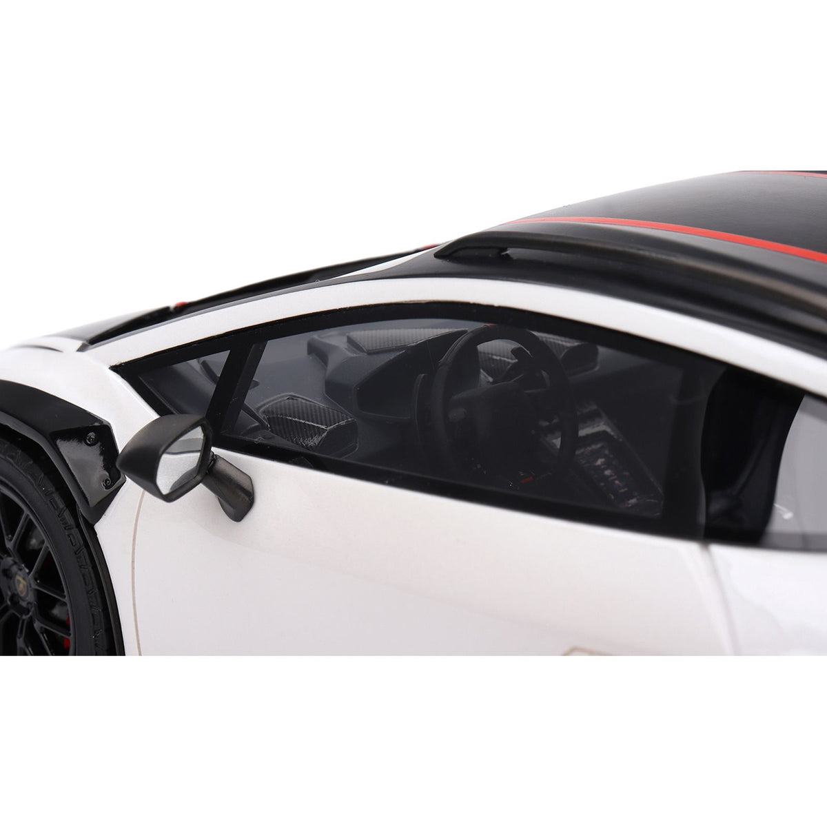 Lamborghini Huracan Sterrato Bianco Asopo White with Matt Black Top and Red Stripes 1/18 Model Car by Top Speed