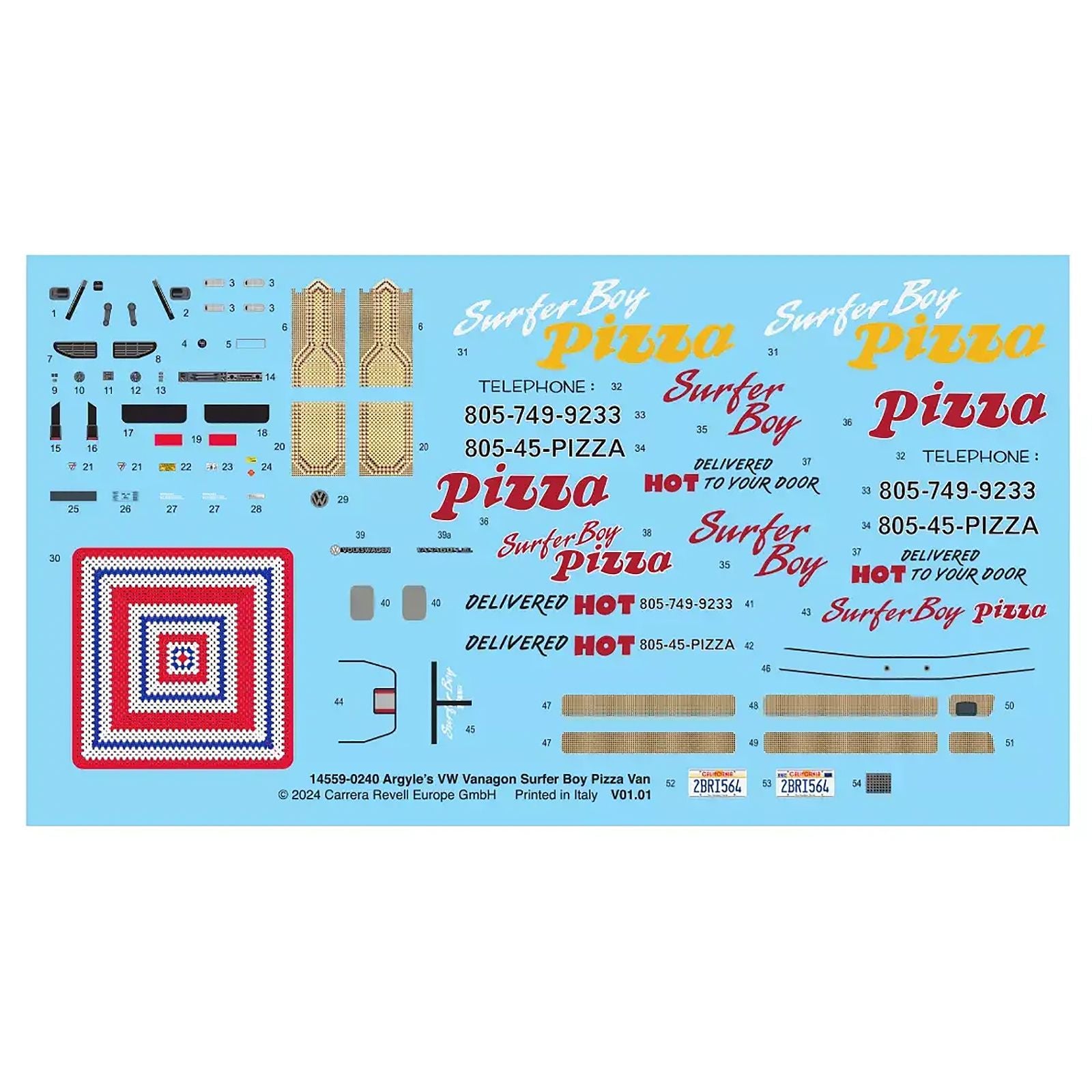 - Brand new plastic model kit of Argyle’s Volkswagen Vanagon "Surfer Boy Pizza" Van "Stranger Things" (2016-Current) TV Series (Level 3) 1/25 plastic model kit by Revell.
