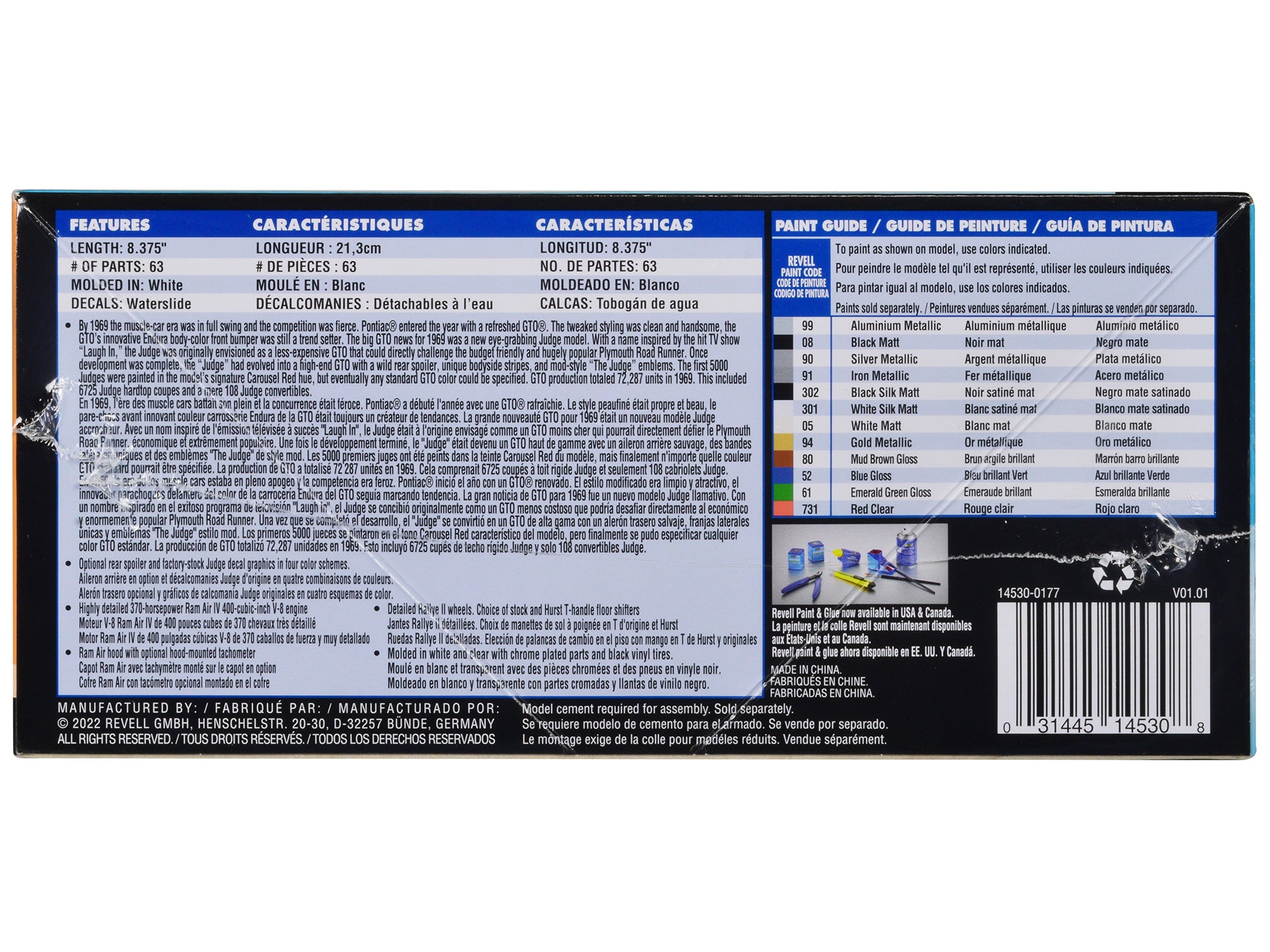 - Brand new plastic model kit of 1969 Pontiac GTO 2-in-1 Kit (Level 4) 1/24 plastic model kit by Revell.