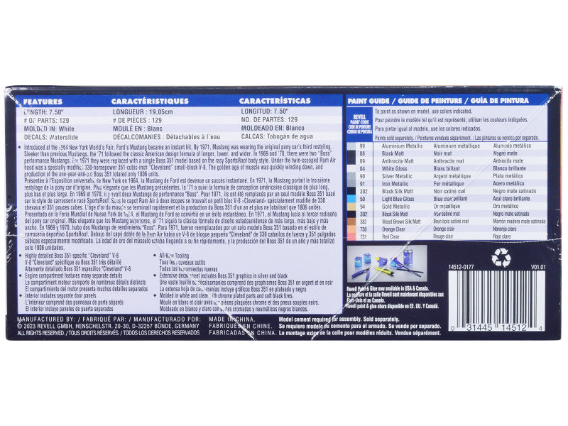 - Brand new plastic model kit of 1971 Ford Mustang Boss 351 (Level 4) 1/25 plastic model kit by Revell.