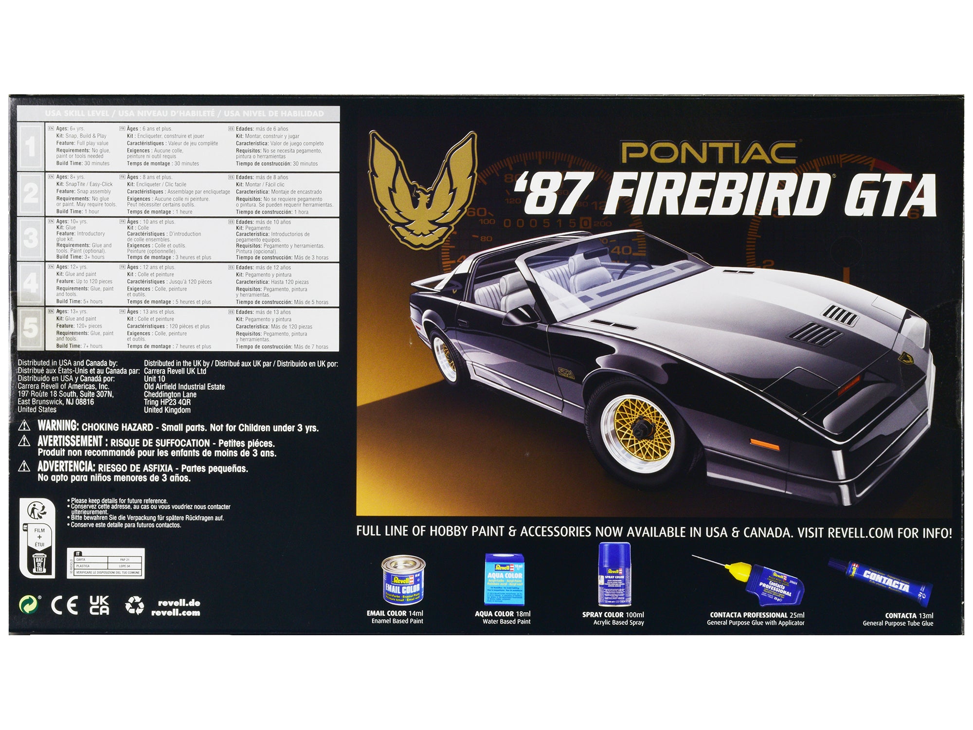 - Brand new plastic model kit of 1987 Pontiac Firebird GTA (Level 5) 1/16 plastic model kit by Revell.