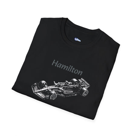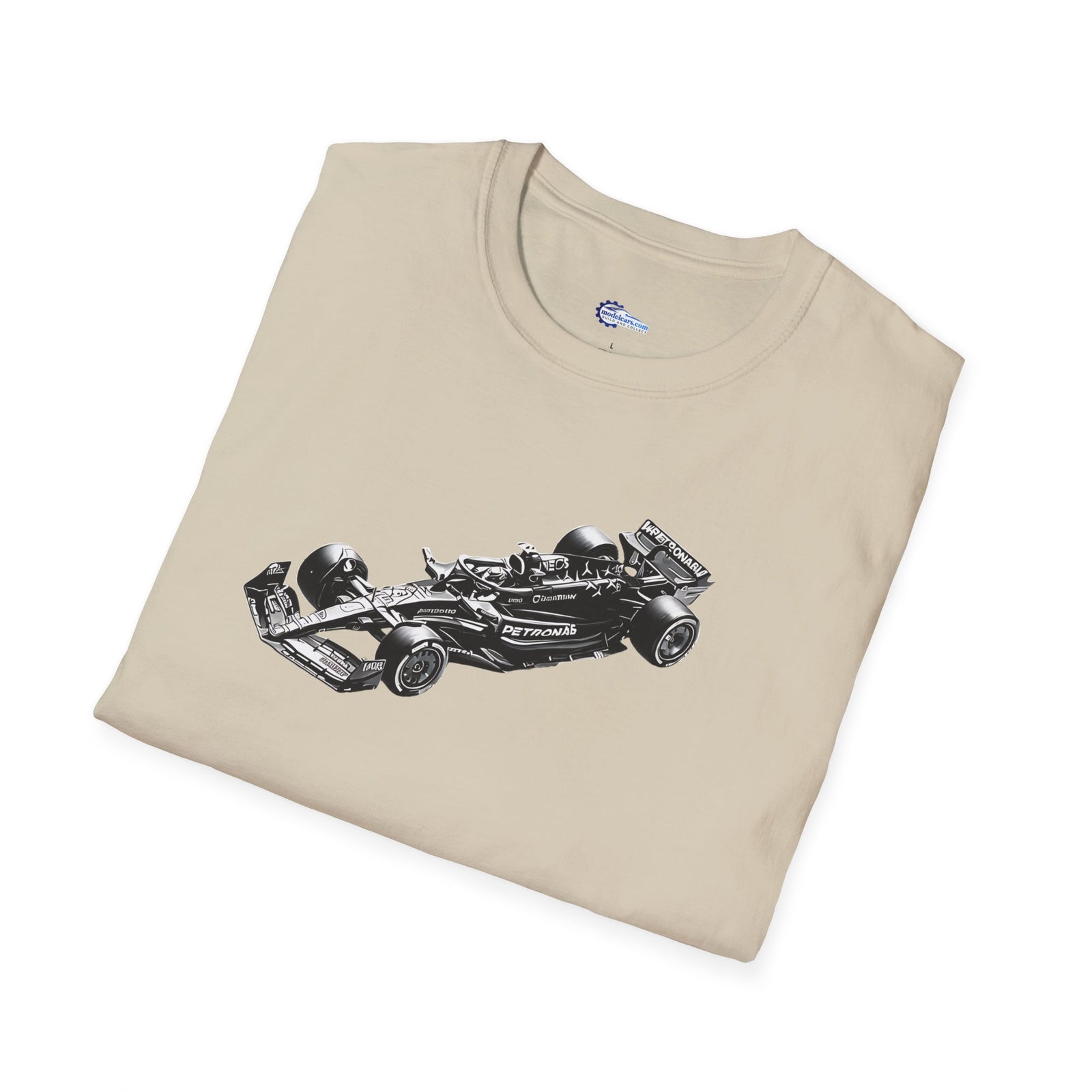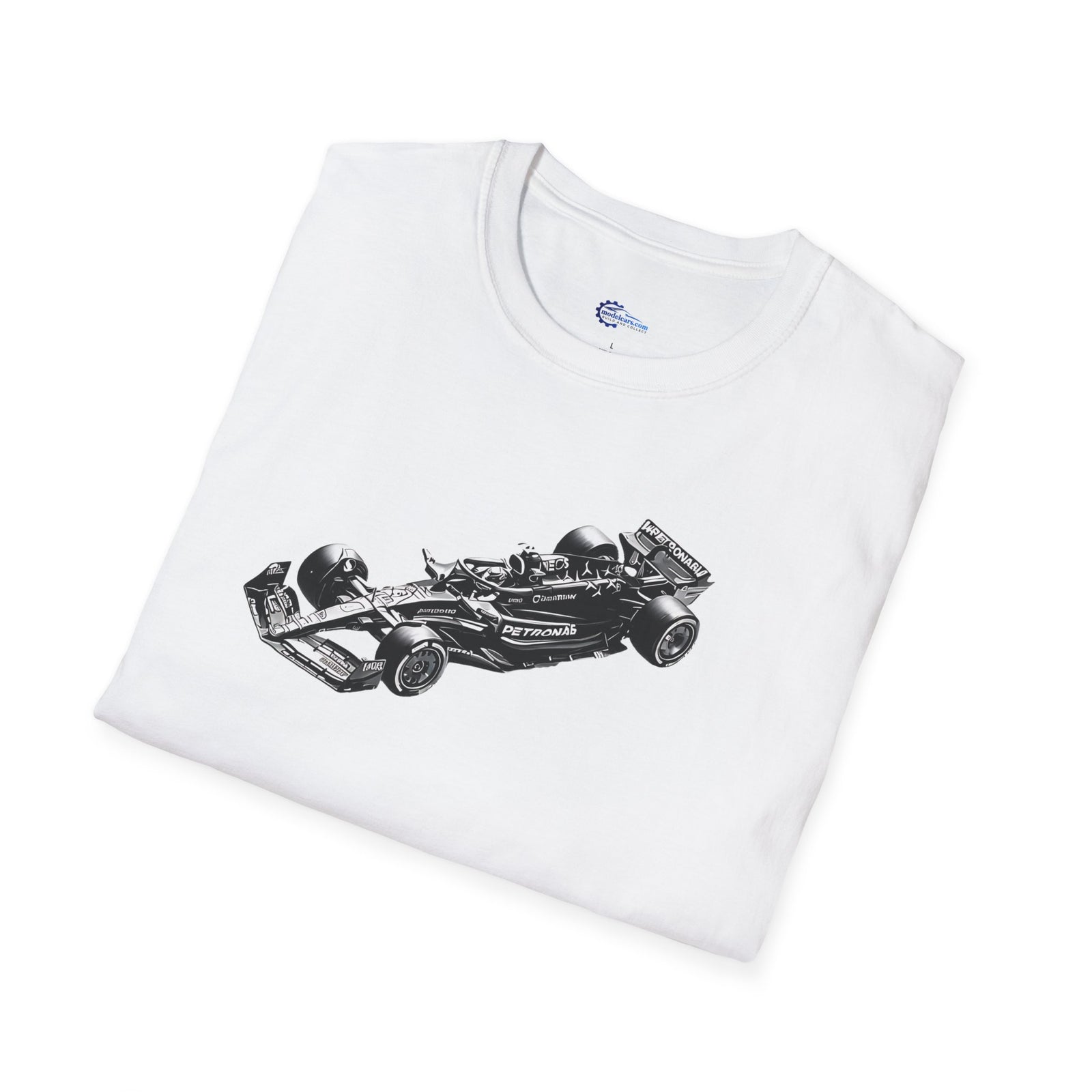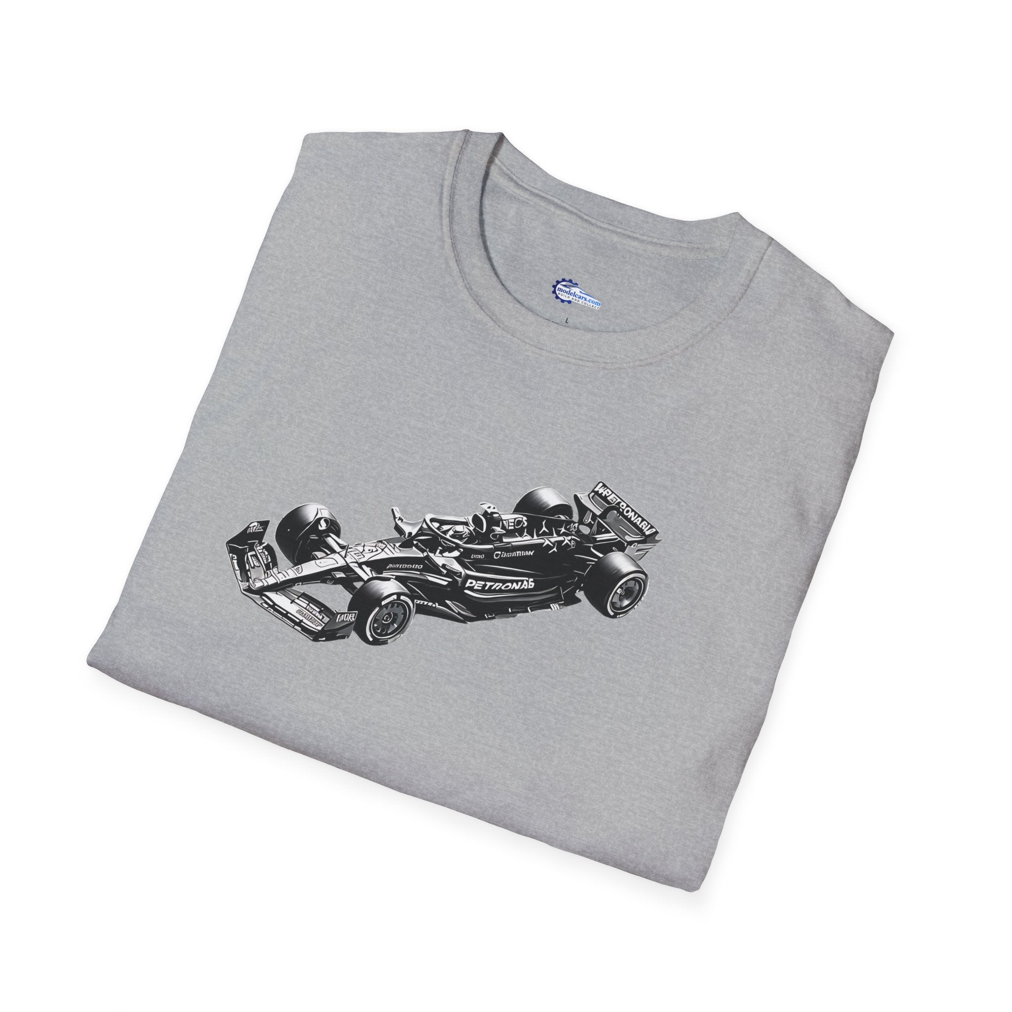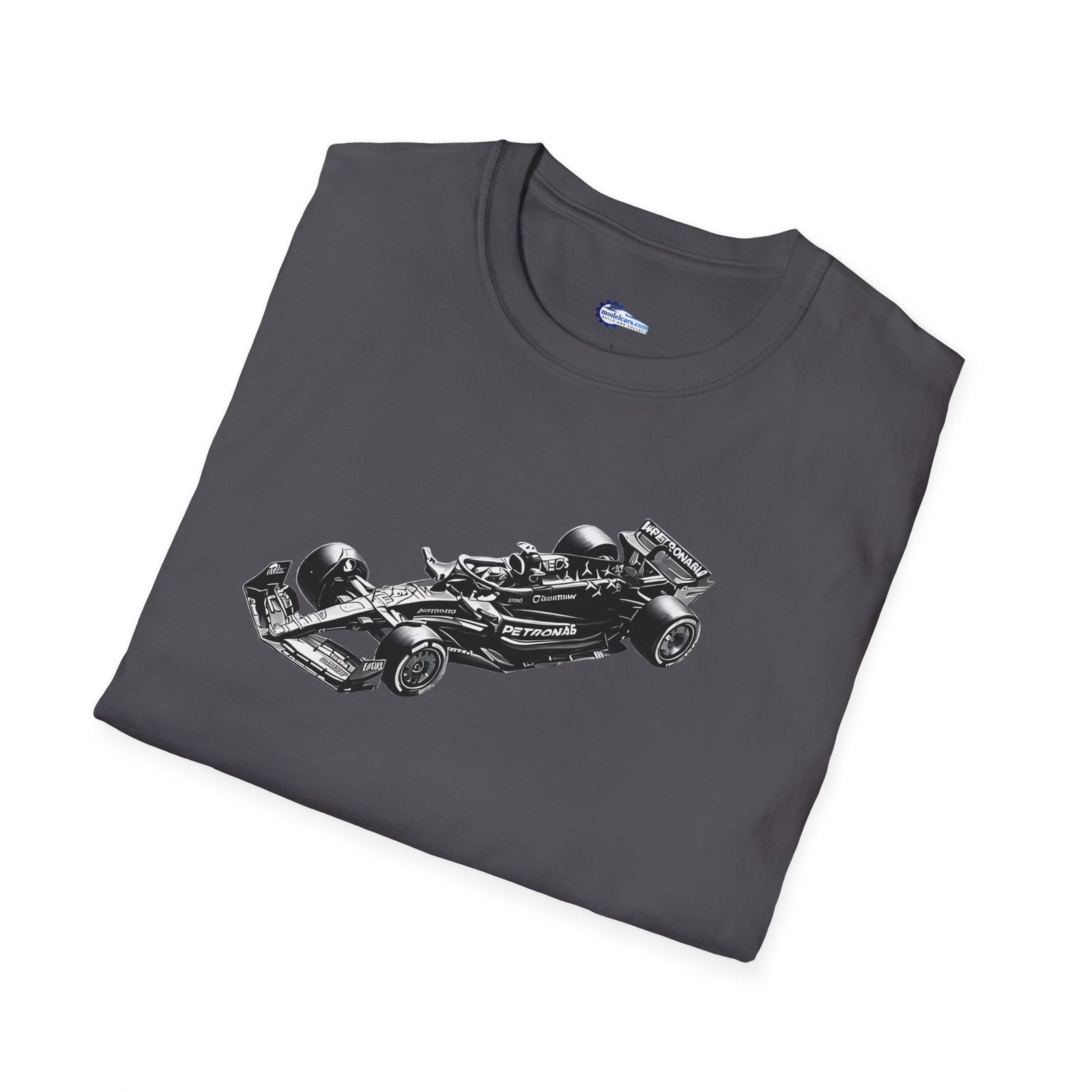 This T-Shirt features a dynamic noir art design showcasing the Mercedes-AMG F1 W14 E Performance #44 Lewis Hamilton 'Petronas' 2nd Place Formula One F1 'Spanish GP' (2023). It exudes a sporty and energetic vibe, perfect for Formula One enthusiasts. This T-Shirt is ideal for those who appreciate high-speed racing and want to show their support for Lewis Hamilton.