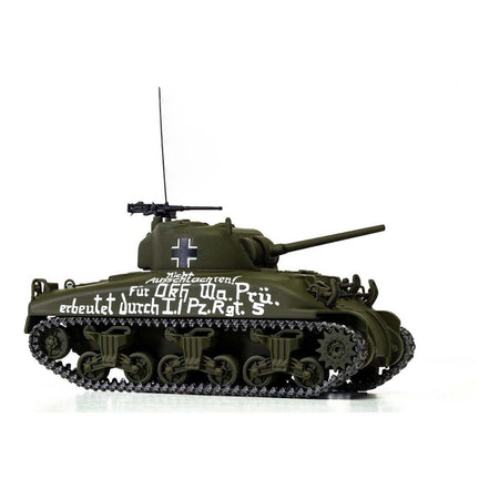 - Brand new 1/50 scale diecast model of M4A1 Sherman Medium Tank "BeutePanzer (Trophy Tank), US Army, North African Campaign, Captured by L./PzRgt 5, Tunisia" (1943) German Army "Military Legends" Series die cast model by Corgi.