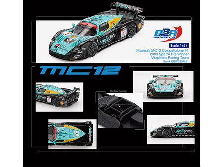 - Brand new 1/64 scale diecast car model of Maserati MC12 Competizione #1 Michael Bartels - Andrea Bertolini - Eric van de Poele - Stephane Sarrazin "Vitaphone Racing Team" Winner "24 Hours of Spa" (2008) die cast model car by BBR Models.