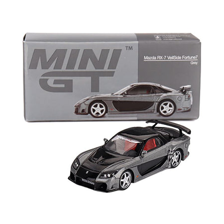 Mazda RX-7 "VeilSide Fortune7" Gray Metallic and Black with Red Interior Limited Edition 1/64 Diecast Model Car by Mini GT