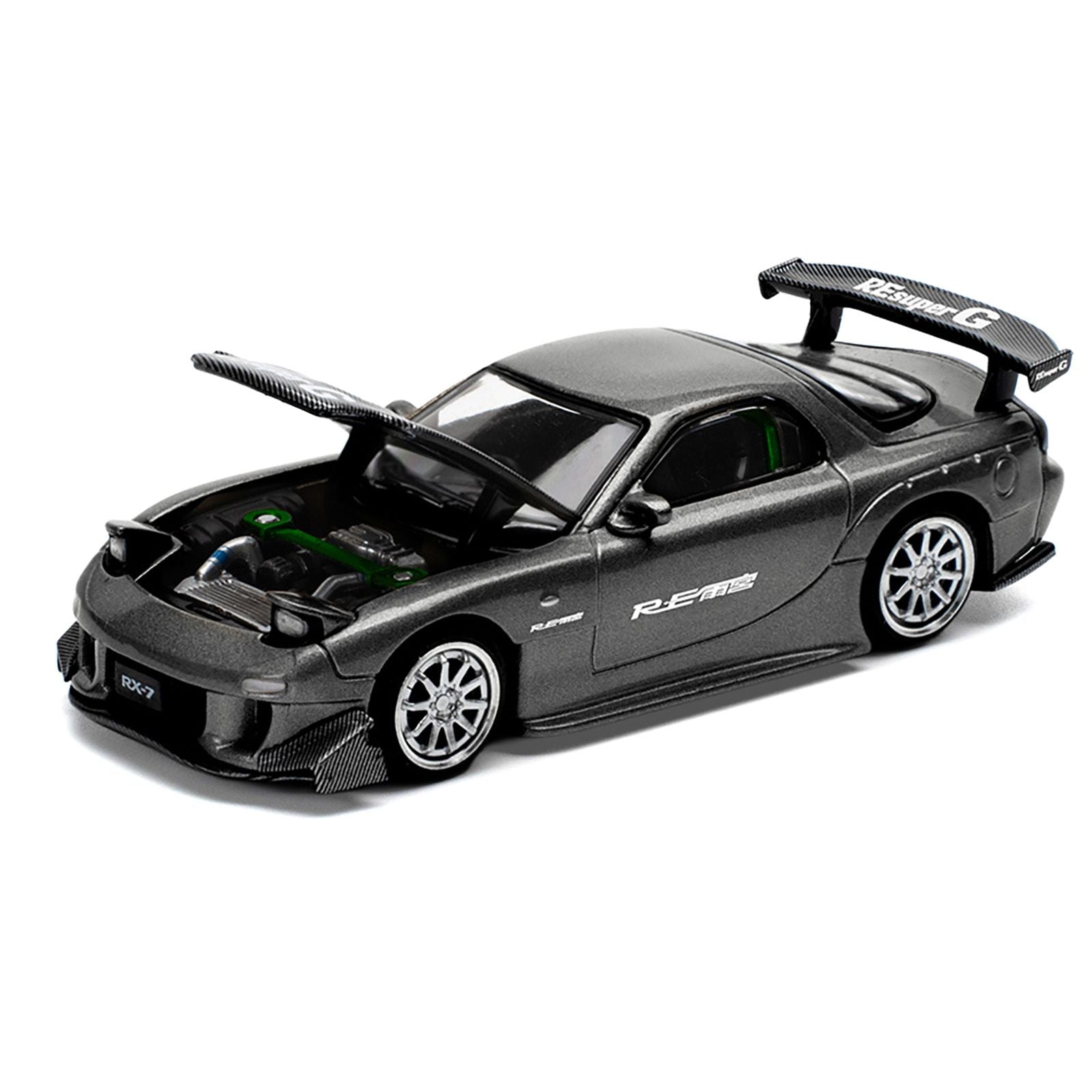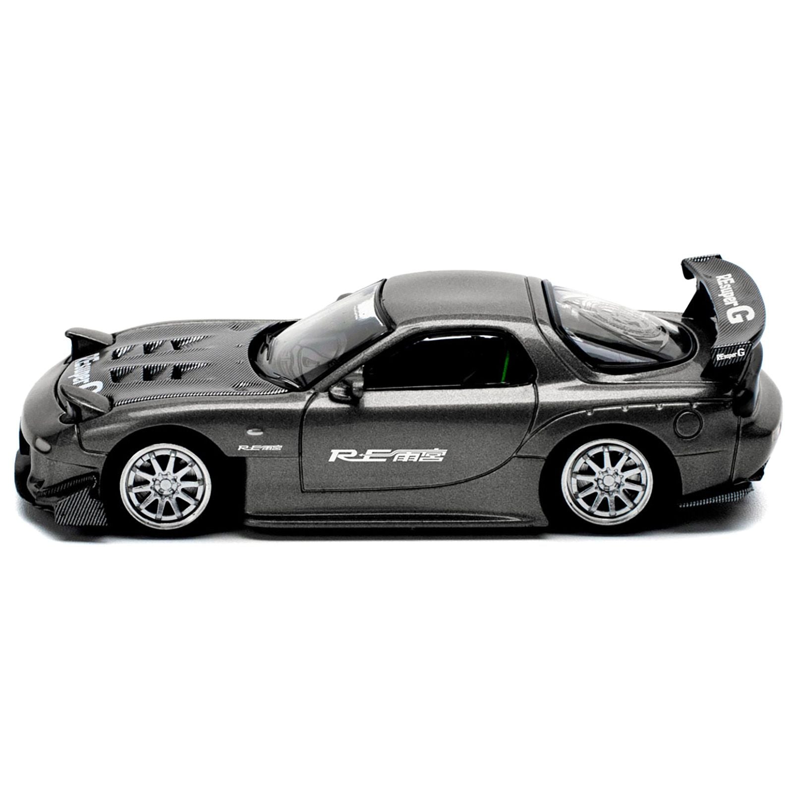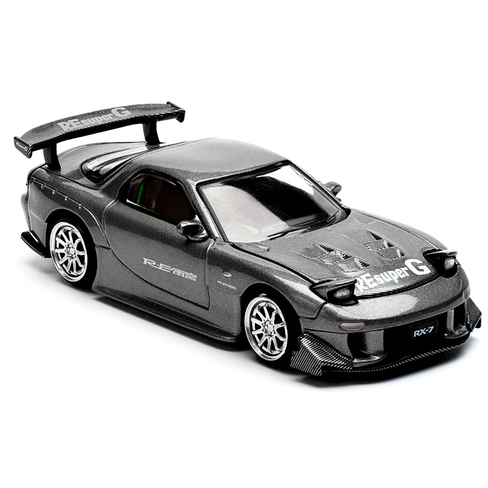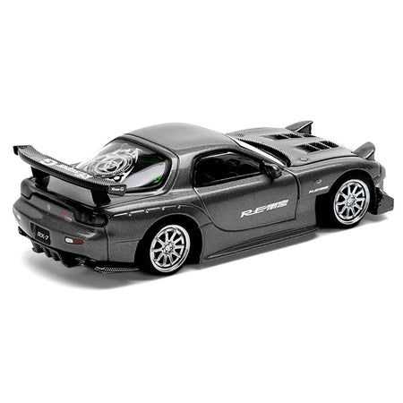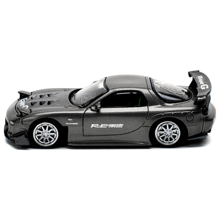 Mazda RX7 (FD) "RE Amemiya" Widebody RHD (Right Hand Drive) Gunmetal Gray Metallic with Carbon Hood 1/64 Diecast Model Car by Pop Race