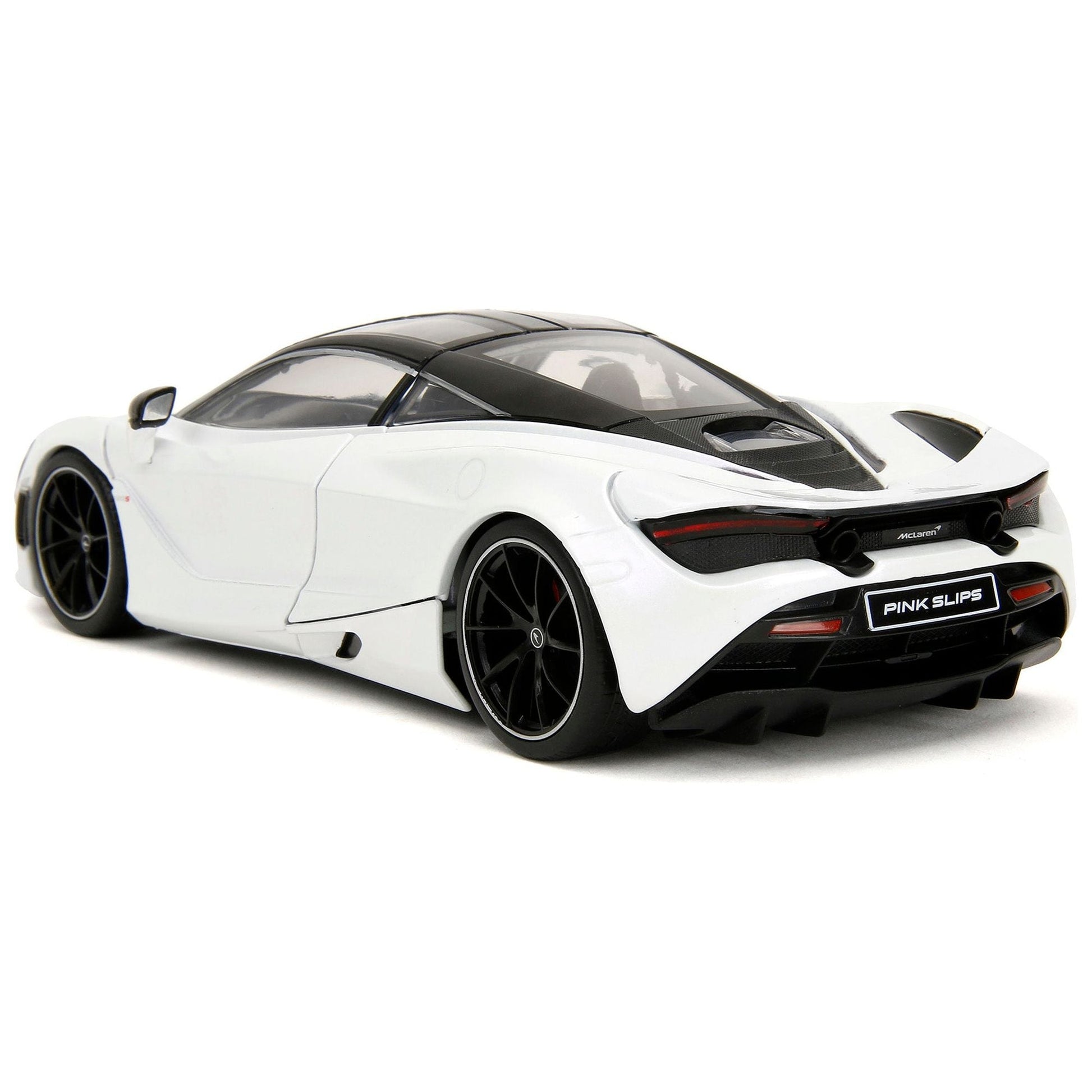 - Brand new 1/24 scale diecast car model of McLaren 720S White Metallic with Black Top "Pink Slips" Series die cast model car by Jada.