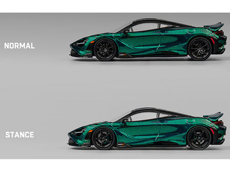 - Brand new 1/64 scale diecast car model of McLaren 765LT Green Carbon Metallic with Black Top and Extra Wheels die cast model car by CM Model.
