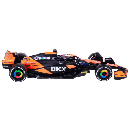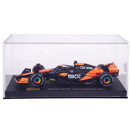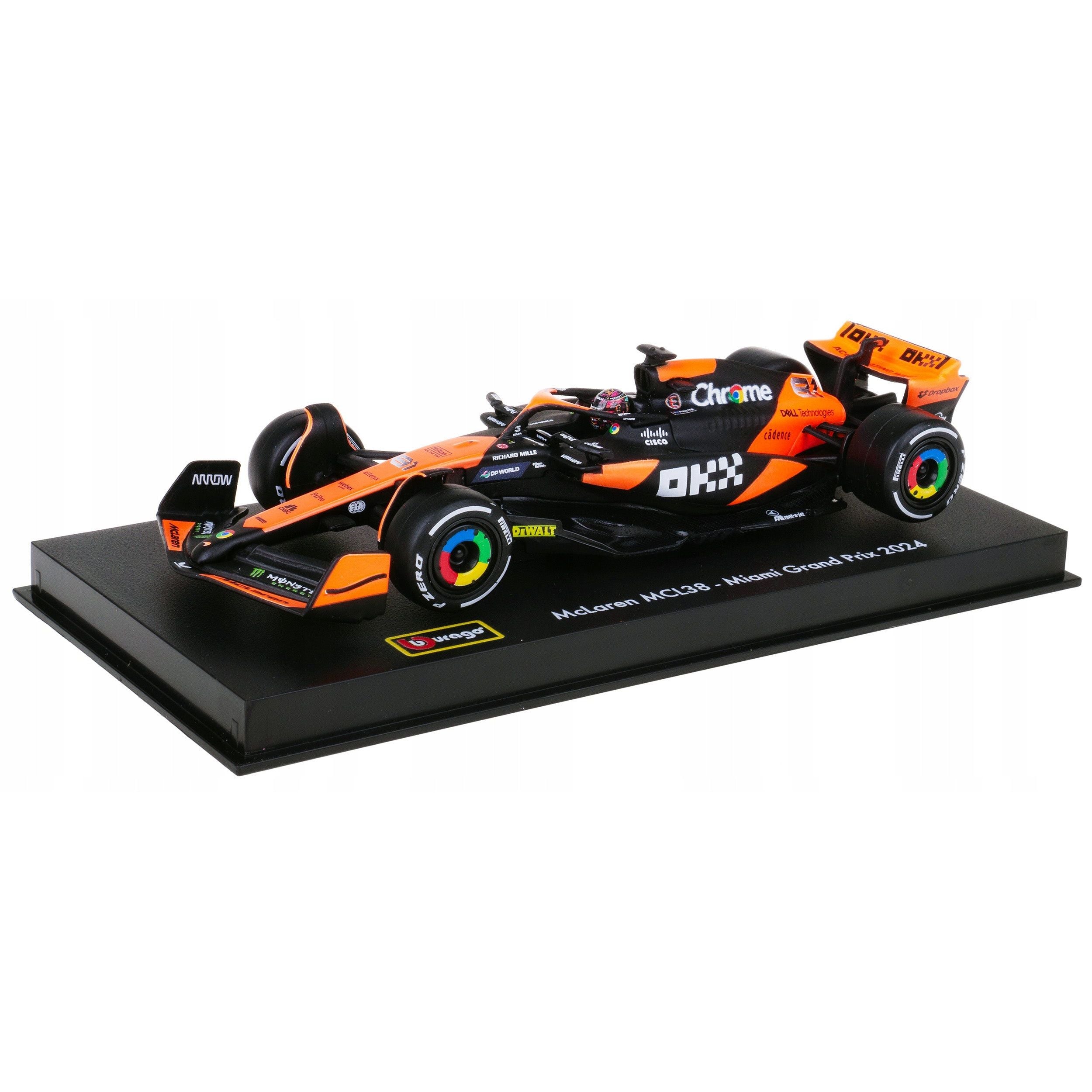 - Brand new 1/43 scale diecast car model of McLaren MCL38 #81 Oscar Piastri "OKX" Formula One F1 "Miami GP" (2024) with Driver Figure and Display Case "Race" Series die cast model car by Bburago.