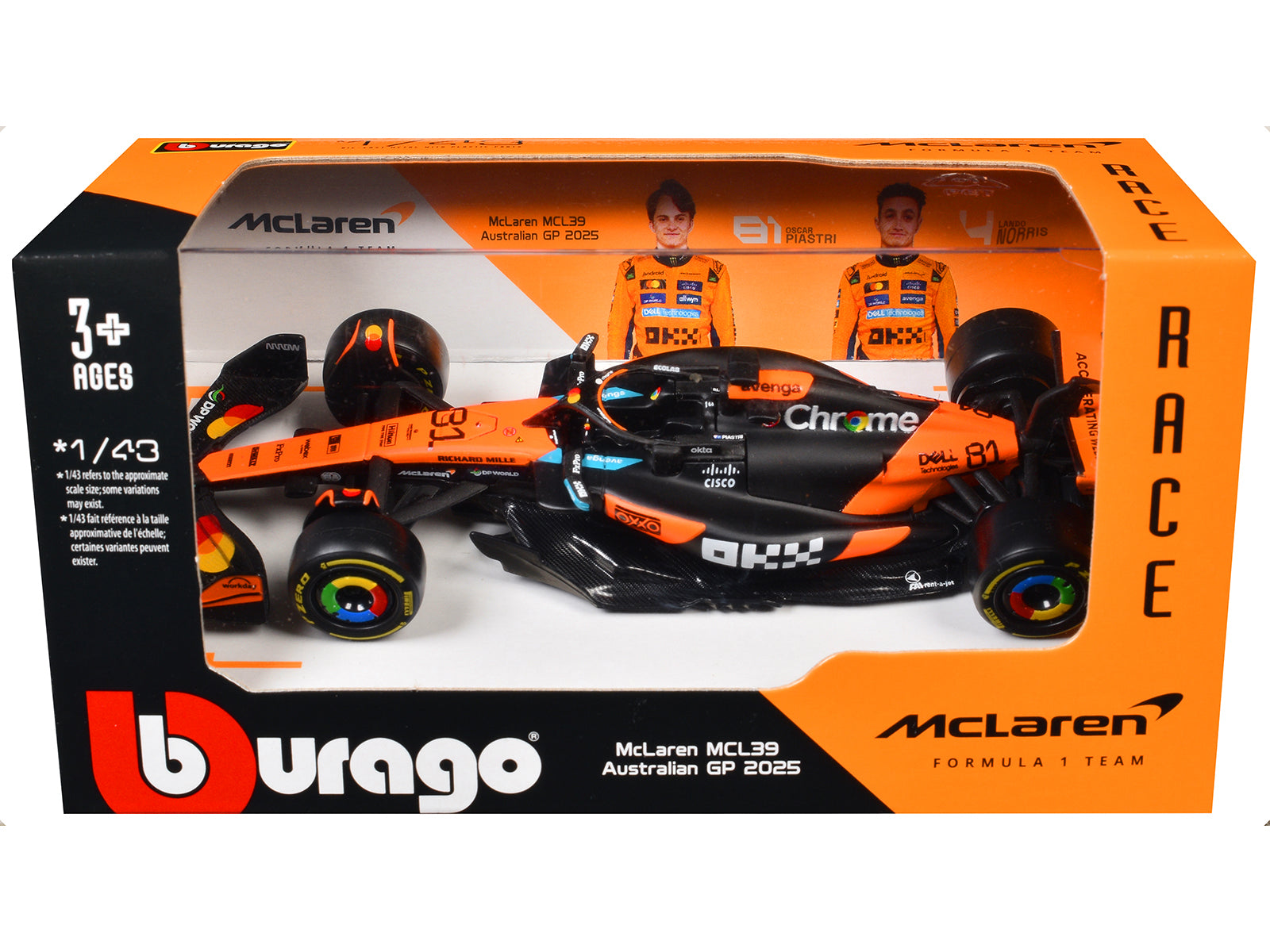- Brand new 1/43 scale diecast car model of McLaren MCL39 #81 Oscar Piastri "OKX" Formula One F1 "Australian GP" (2025) "Race" Series die cast model car by Bburago.
