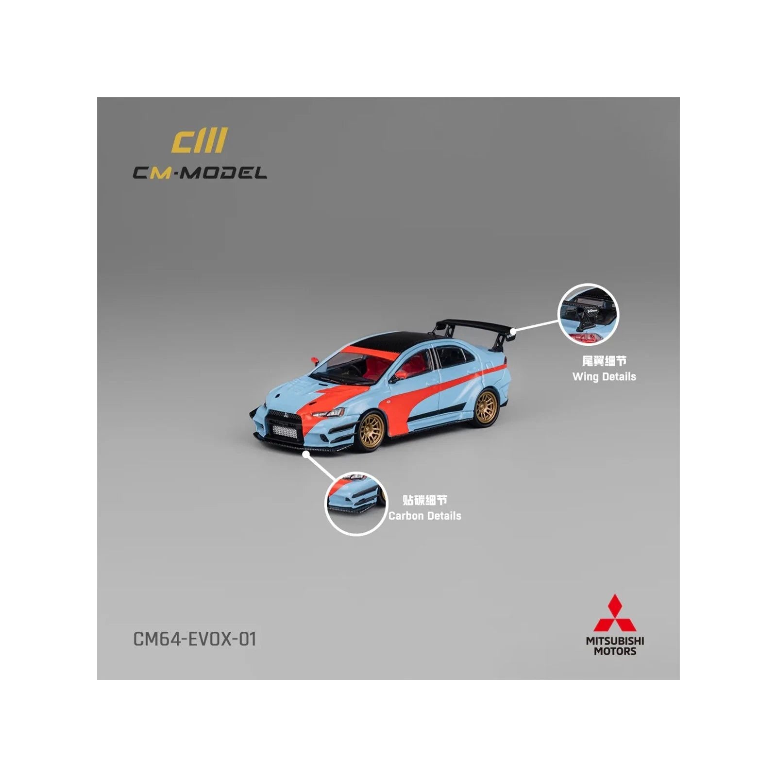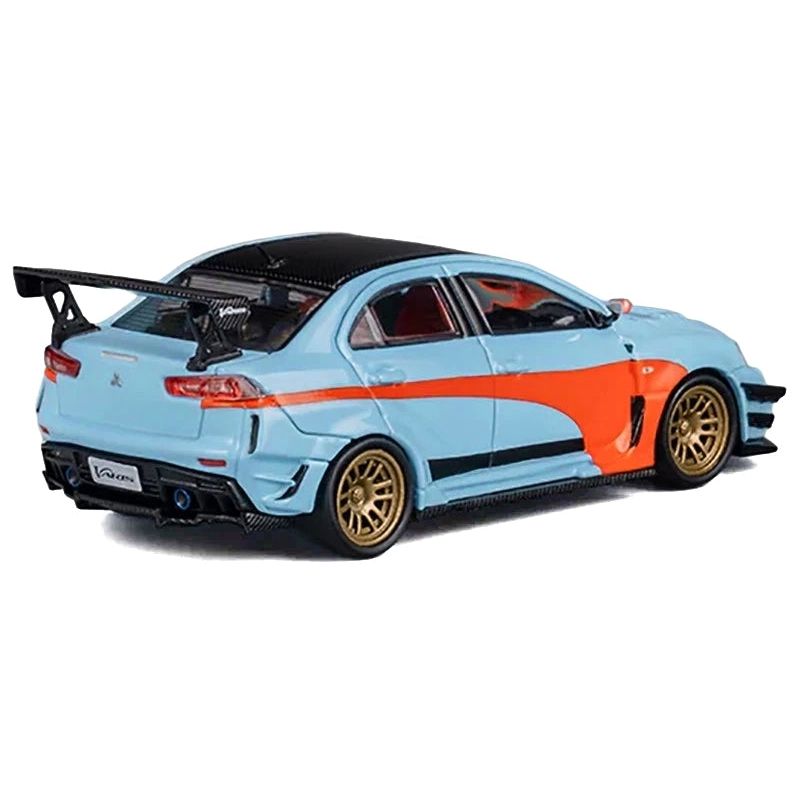 - Brand new 1/64 scale diecast car model of Mitsubishi Lancer Evolution X Varis RHD (Right Hand Drive) Light Blue with Black Top and Orange Stripes die cast model car by CM Model.