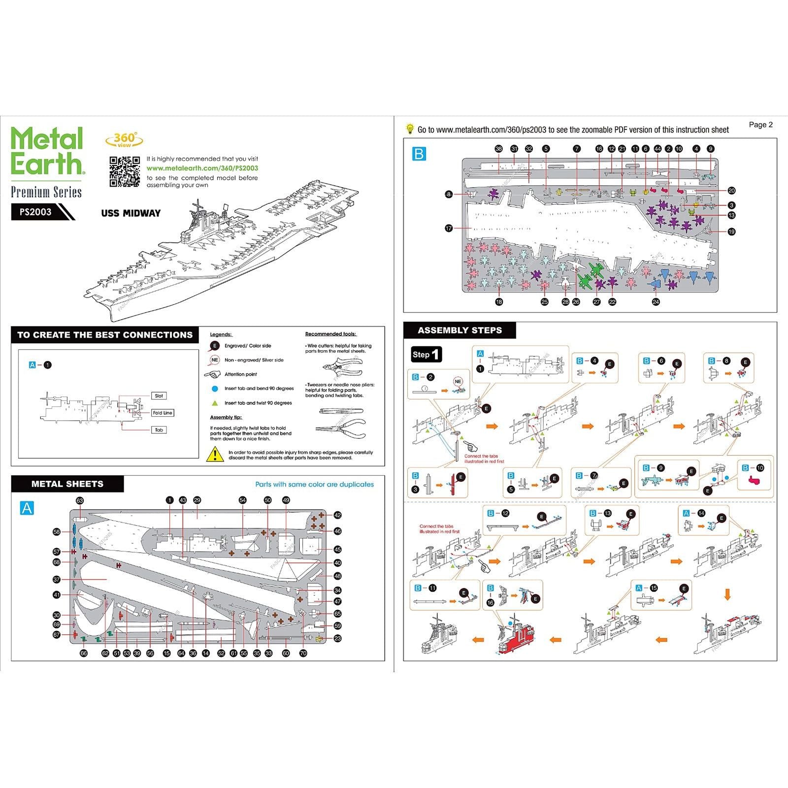 Model Kit USS Midway (CV-41) Aircraft Carrier (Challenging Difficulty) Steel Model by Metal Earth