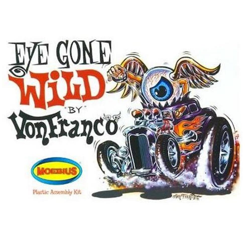 This is the Moebius Models Von Franco Eye Gone Wild 1/20 Scale Model Kit. Moebius Models offers a highly detailed styrene kit from the creative mind of Kulture artist Von Franco! Non scale injection kit is more than a handful! Vehicle itself is approximately 1/20th scale with winged flying eyeball driving.