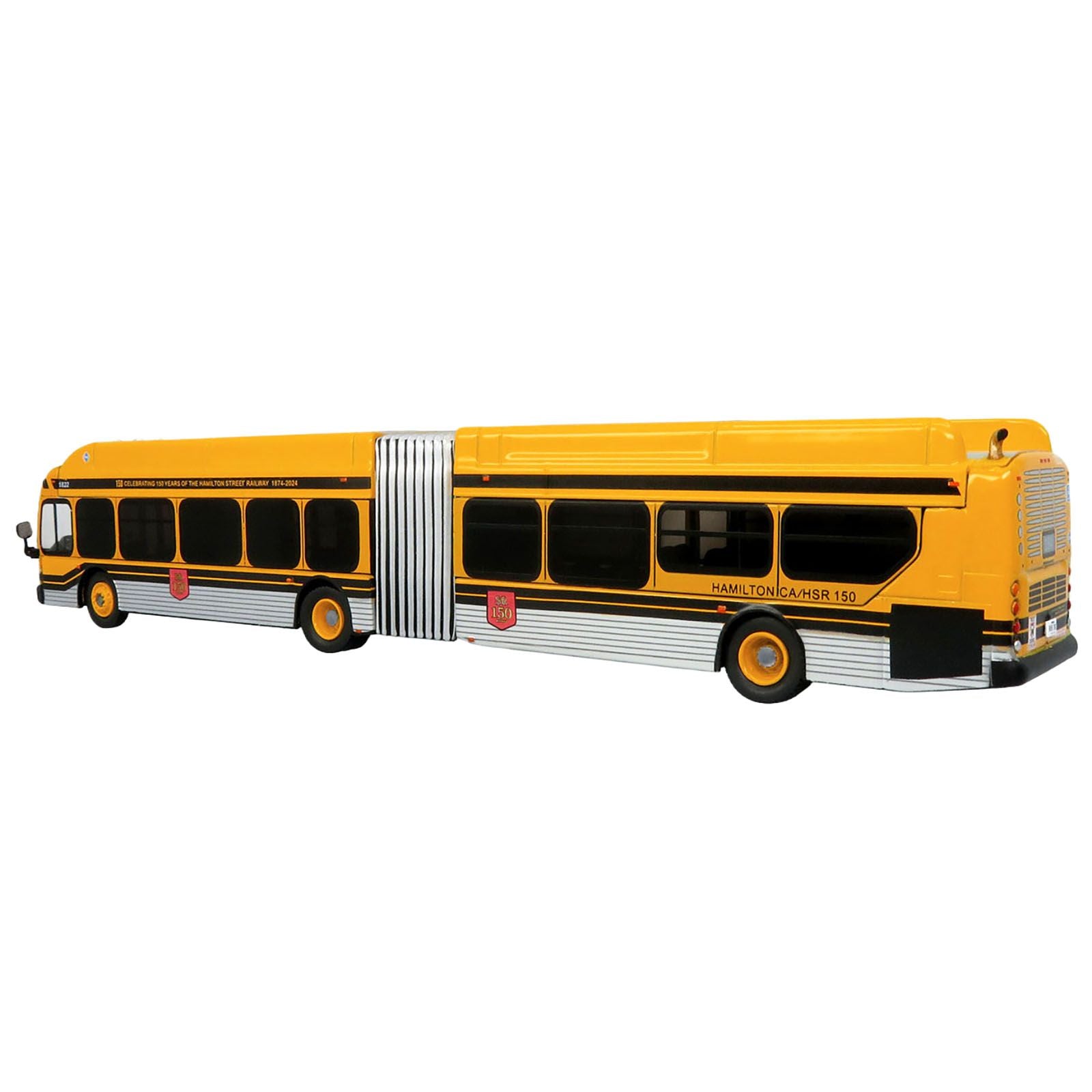 - Brand new 1/87 (HO) scale diecast model of New Flyer Xcelsior XE60 Articulated Transit Bus "Hamilton Street Railway - 150th Anniversary" Yellow with Black Stripes "The Bus & Motorcoach Collection" Limited Edition die cast model by Iconic Replicas.