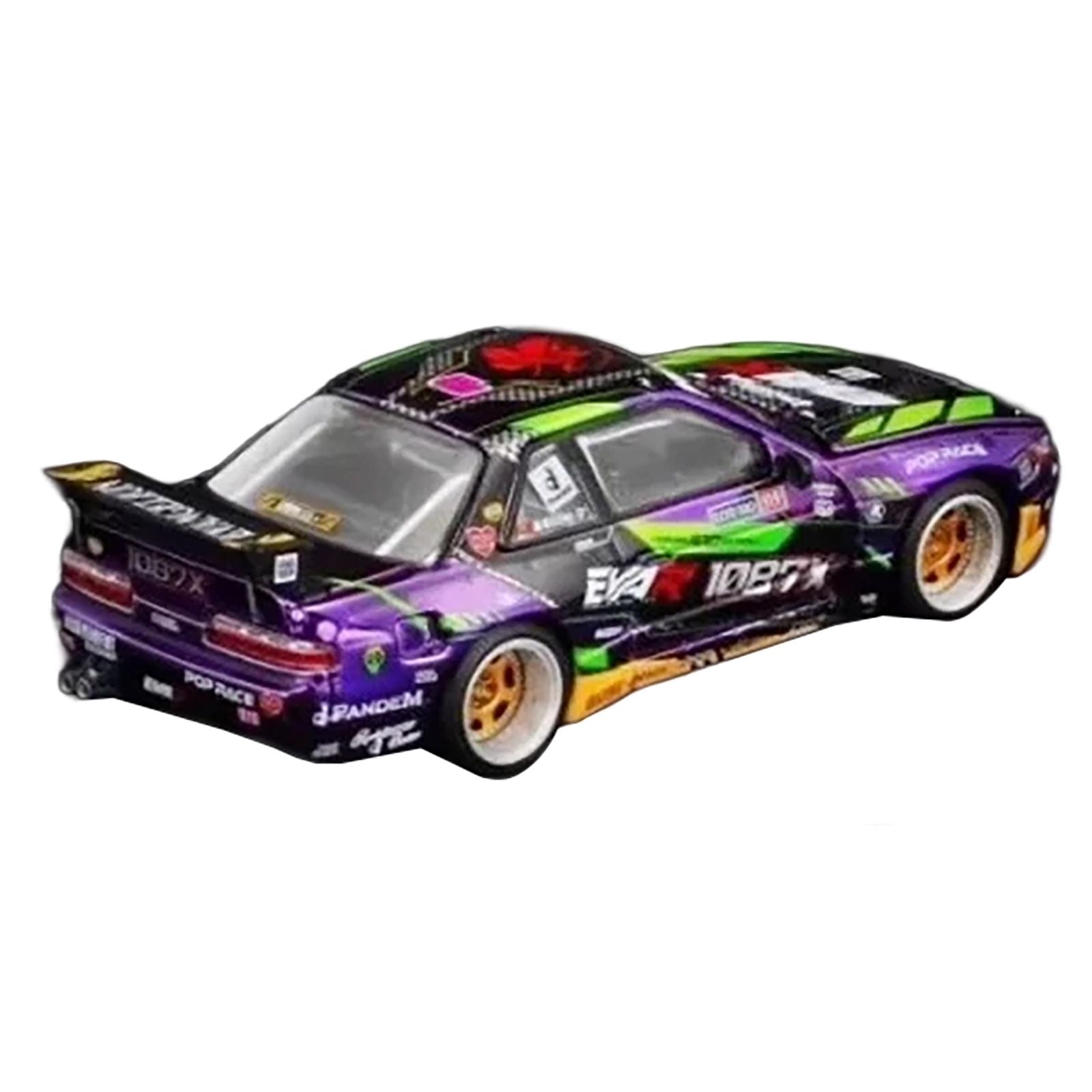 - Brand new 1/64 scale diecast car model of Nissan S13 1087X Pandem RHD (Right Hand Drive) "EVA RT Test Type-01" Purple Metallic with Graphics "APA XPO 2025 Exclusive" die cast model car by Pop Race.