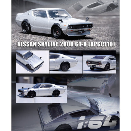 - Brand new 1/64 scale diecast car model of Nissan Skyline 2000 GT-R (KPGC110) RHD (Right Hand Drive) Silver Metallic die cast model car by Inno Models.