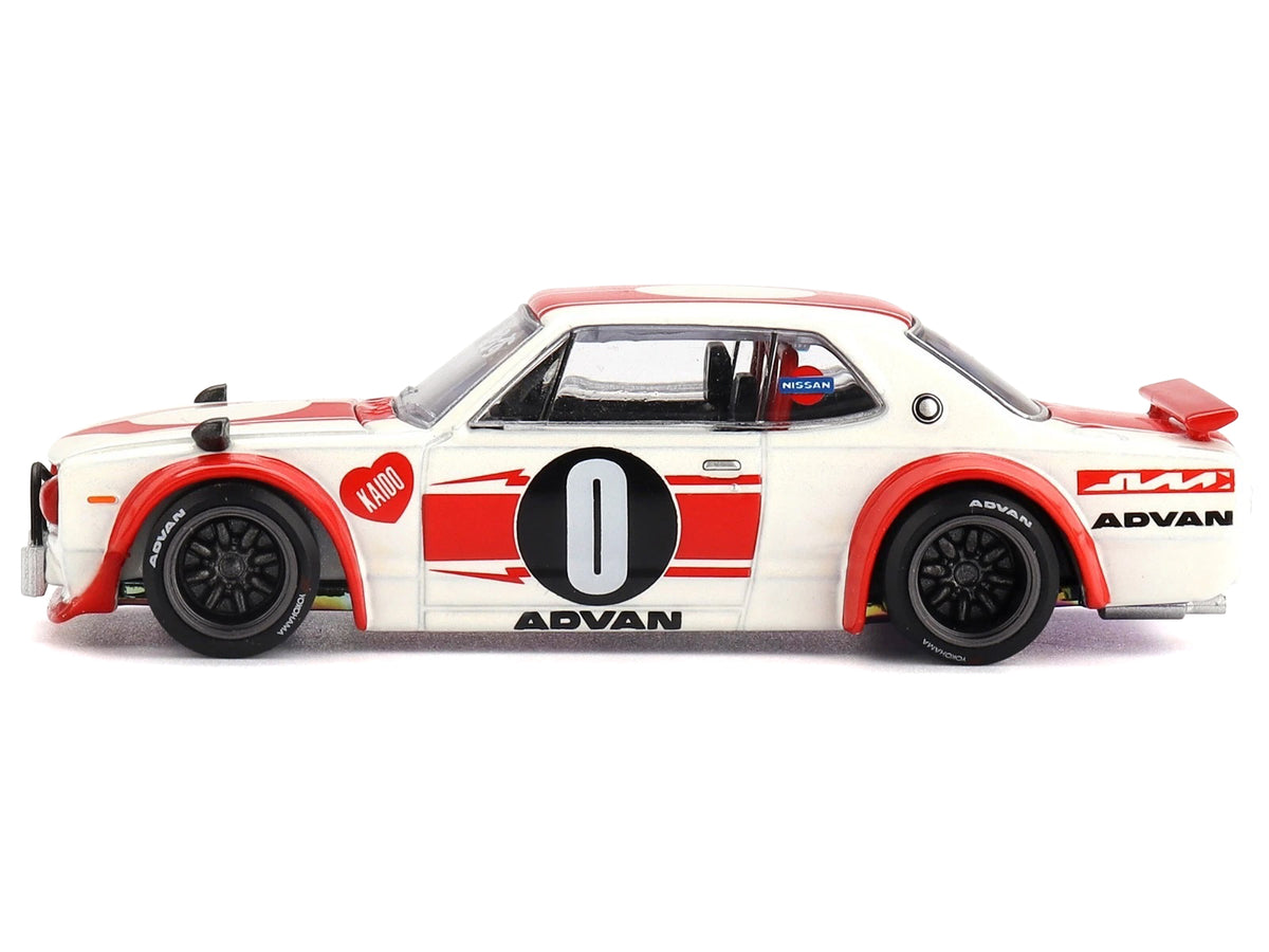 Nissan Skyline 2000GT-R (KPGC10) "Kaido Works V2" RHD (Right Hand Drive) White with Red Stripes (Designed by Jun Imai) "Kaido House" Special 1/64 Diecast Model Car by Mini GT