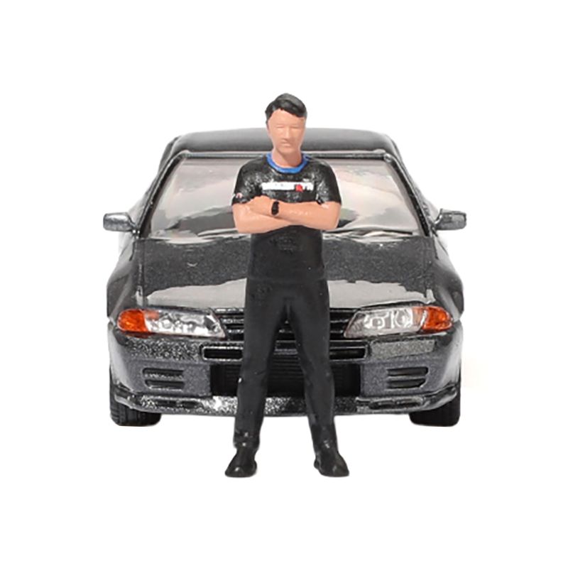 Nissan Skyline GT-R (R32) RHD (Right Hand Drive) Gunmetal Gray Metallic with Tsugio Matsuda Figure Limited Edition 1/64 Diecast Model Car by Mini GT