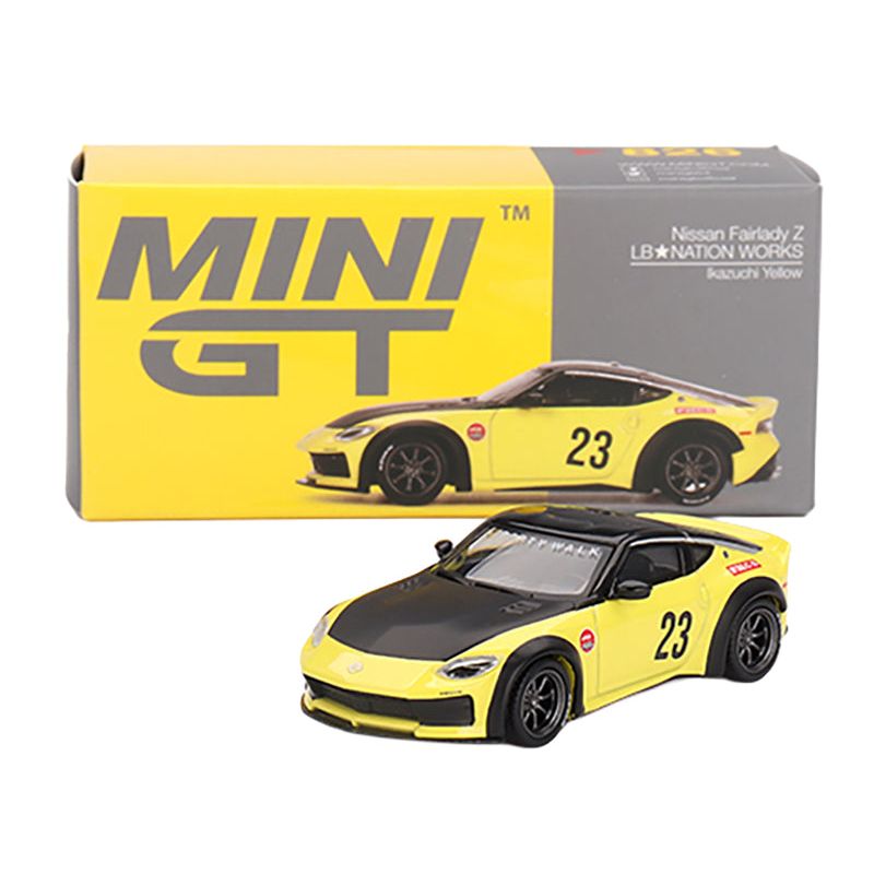 Nissan Z "LB-Nation Works" #23 Ikazuchi Yellow with Black Hood and Top Limited Edition 1/64 Diecast Model Car by Mini GT