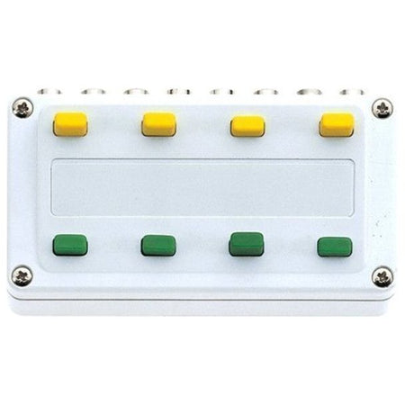 Control Box. This control box is for turning 4 different track or accessory circuits on and off. For example, power can be controlled in 4 storage sidings in 4 different track circuits. Unit comes with 8 sockets on the back. All of the connections are for the new plugs from the 71400 sets. 8 appropriate plugs included. Dimensions 80 x 40 mm / 3-1/8" x 1-9/16". Highlights: All of the connections on this control box have the new plugs and sockets. Plugs to work with this control box are included. This control box works in the same manner as the 7273 control box.