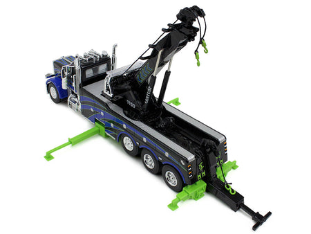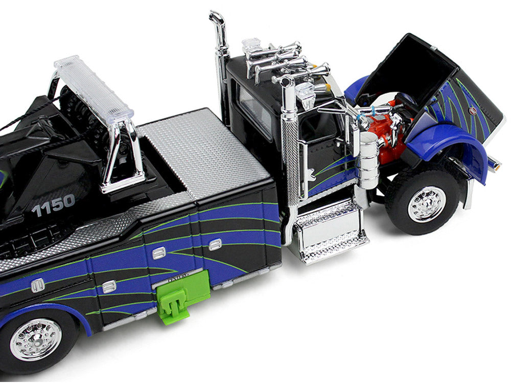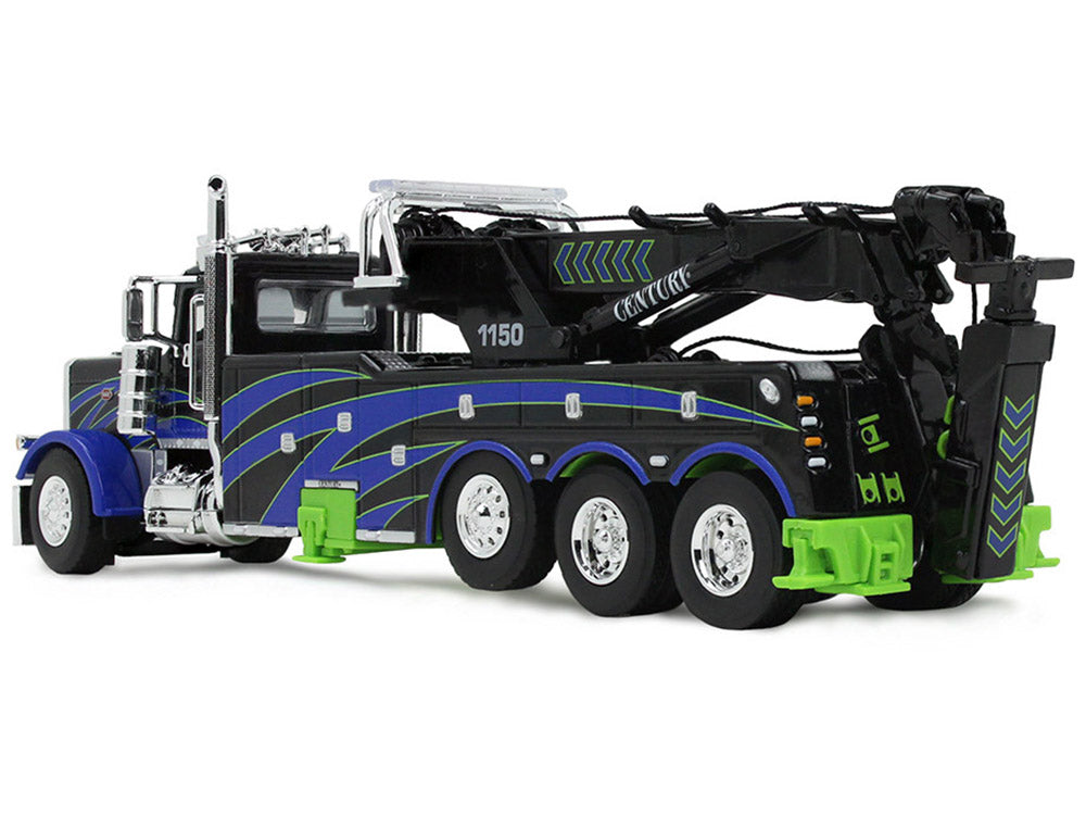 Peterbilt 389 Day Cab with Miller Century 1150 Rotator Wrecker Tow Truck Black with Blue and Green Graphics 1/64 Diecast Model by DCP/First Gear