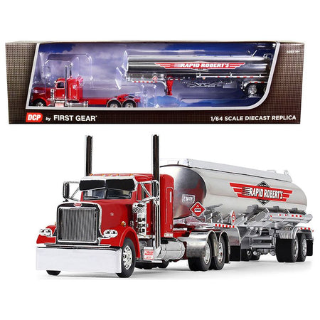 - Brand new 1/64 scale diecast model of Peterbilt 389 with 36" Flattop Sleeper Cab and Heil Fuel Tanker Trailer Red and Chrome "Rapid Robert's, Inc." die cast model by DCP/First Gear.