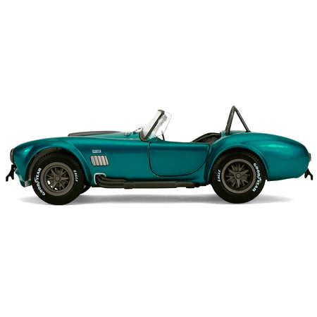 - Brand new 1/18 scale diecast car model of Shelby Cobra 427 MKII Teal Metallic with Gray Stripes "Pink Slips" Series die cast model car by Jada.