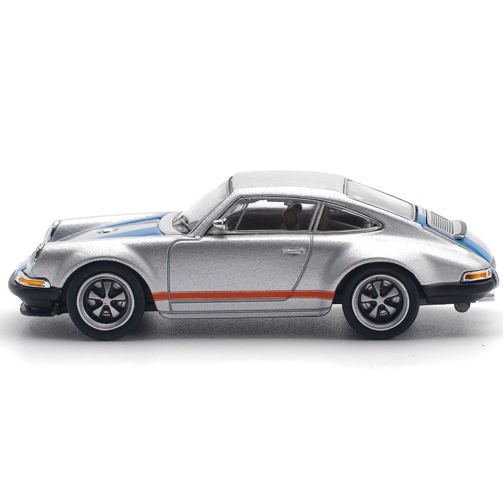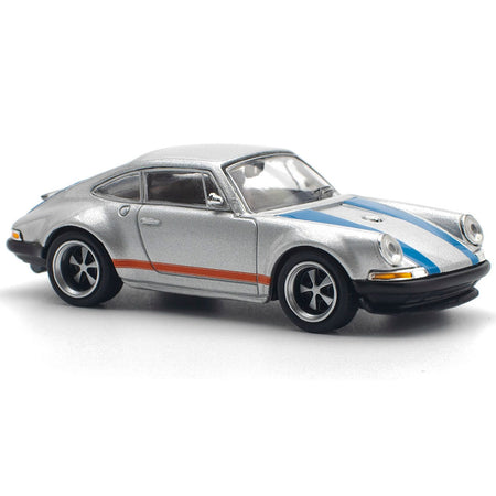 - Brand new 1/64 scale diecast car model of Singer 964 Silver Metallic with Blue and Red Stripes die cast model car by Pop Race.
