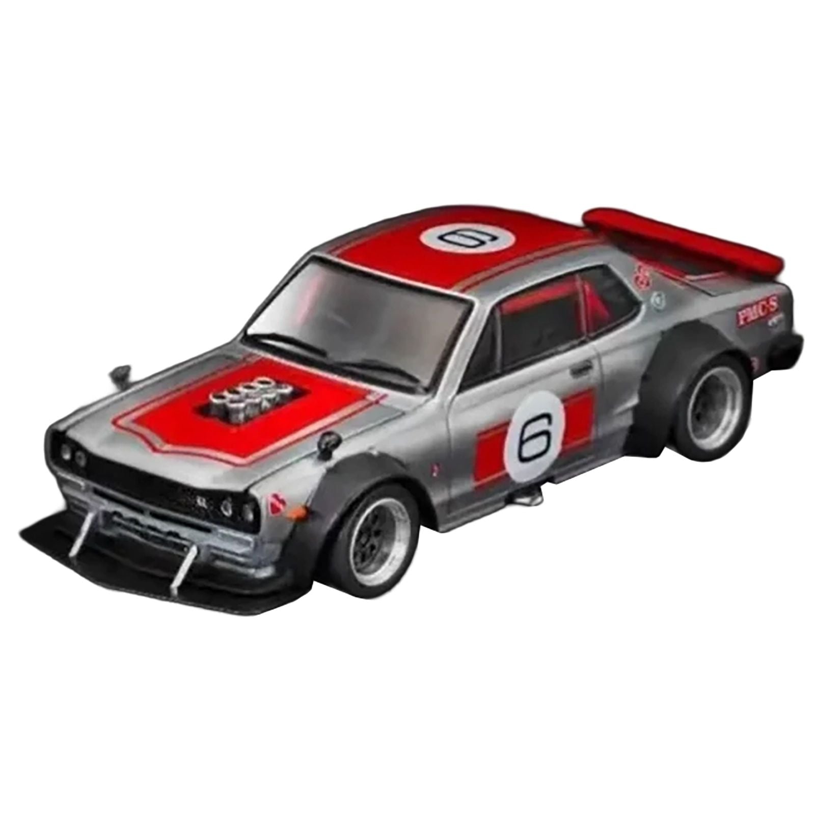 Skyline GT-R V8 Drift "Hakosuka" RHD (Right Hand Drive) #6 Silver Metallic with Red Stripes "APA XPO 2025 Exclusive" 1/64 Diecast Model Car by Pop Race