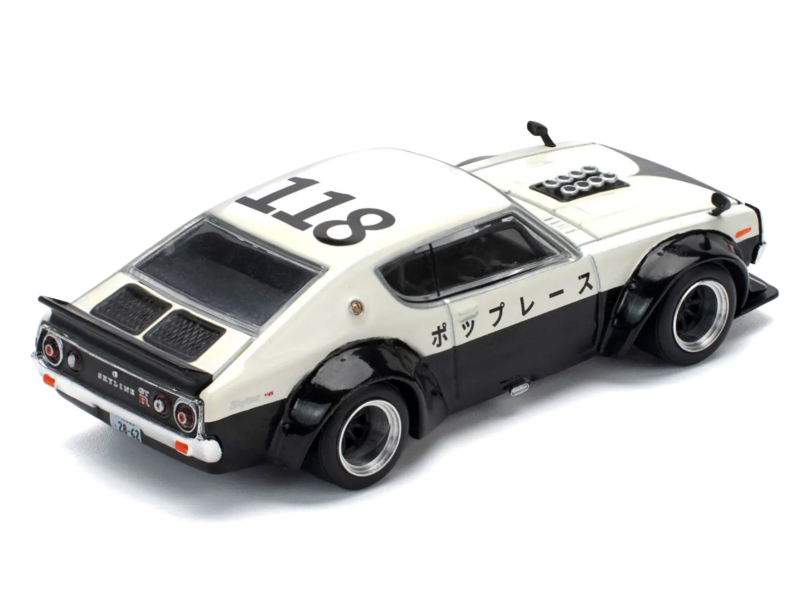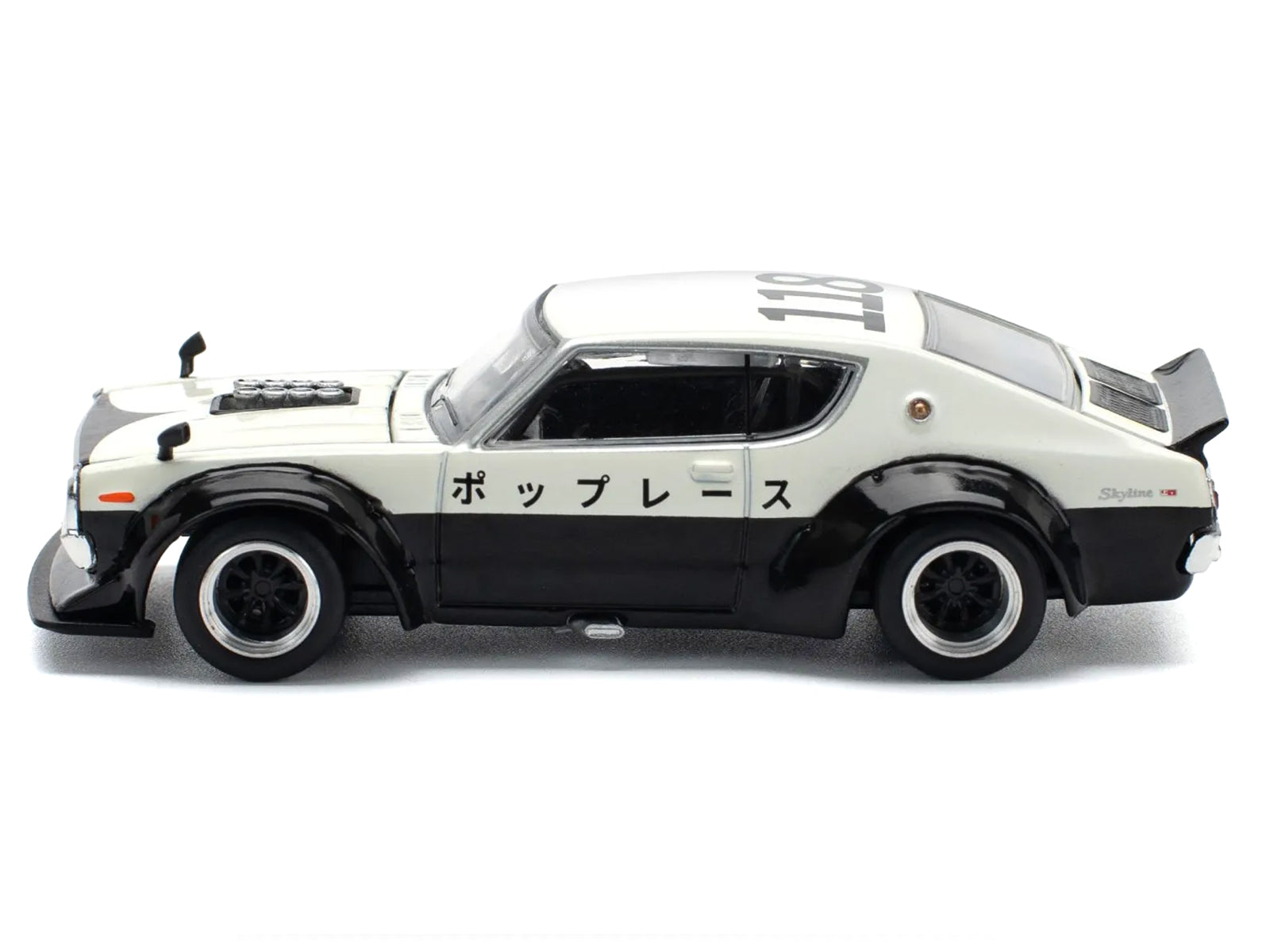 - Brand new 1/64 scale diecast car model of Skyline KPGC110 "Kenmeri" RHD (Right Hand Drive) "Japan National Police Agency Livery" Black and White die cast model car by Pop Race.