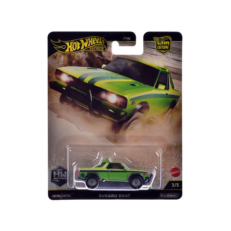 - Brand new diecast car model of Subaru BRAT Utility Truck Green Metallic with Stripes "HW Off Road" Series die cast model car by Hot Wheels.