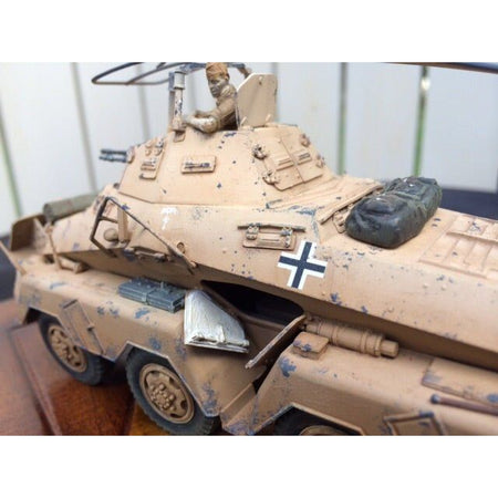 During the first half of WWII, German reconnaissance units greatly used the Sd.Kfz.231 series heavy armored car. Above all, the Sd.Kfz.232 was equipped with a Fu.11 radio and featured a large frame-type antenna mounted on the body. It also came armed with a KwK30 20mm cannon and an MG34 machine gun mounted on its turret. The 8-wheeled Sd.Kfz.232 had an on-road top speed of 90km/h, featured elaborate front and rear driving positions, and a superb 8-wheel drive system. These 8-wheeled armored cars were deployed to armored reconnaissance battalions of Panzer divisions and served as the eyes of the German army from Europe and North Africa to the Russian front.