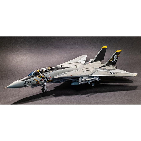 This is a model assembly kit of the Tomcat F-14D, which is an updated version of the aircraft that served until the Tomcat was withdrawn from Navy service in 2006. It featured an improved engine in the shape of the General Electric F110, and the aircrafts transition from the earlier carrier-based fighter models to the F-14D multi-role aircraft was facilitated by digital updates to radar and fire control systems. Some F-14Ds were newly-constructed, while conversions from F-14As also existed.