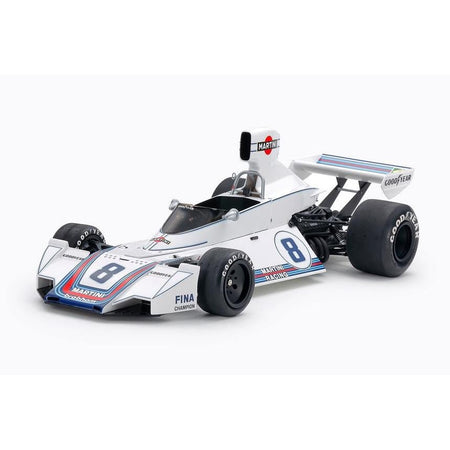 This is a re-release of our legendary 1/12 Big-Scale Martini Brabham BT44B from 1975. Motor Racing Developments designer Gordon Murray evolved the design of this car which features a monocoque body with a distinctive triangular cross-section and wedge-shaped form. Also, Carlos Pace drove the car to a 1st place finish at the Brazil GP and namesake Carlos Reutemann did the same at the German GP, making it one of the more competitive cars in the field during the 1975 Formula One season. The model recreates the lively color scheme of the car, and has a realistic look with Martini and Goodyear logos.