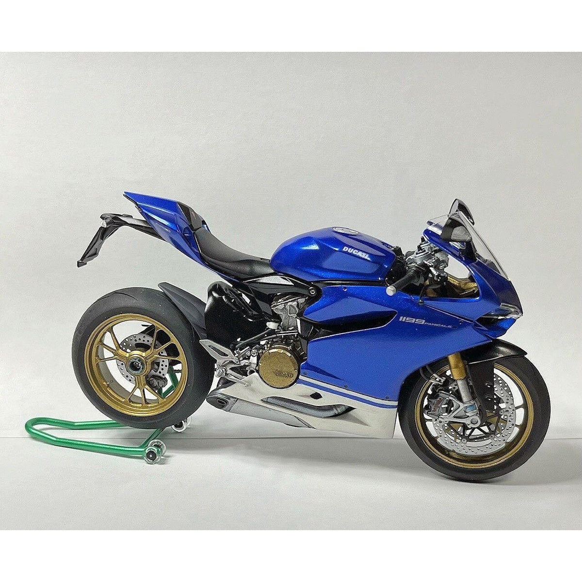 Tamiya has expanded its 1/12 scale motorcycle model series with this all new model of the Ducati 1199 Panigale S. The Ducati 1199 Panigale, which was the base for the bike depicted by this model, was announced at the 2011 Milan Motor Show. It is a breathtaking fusion of beautiful looks and cutting-edge technology, featuring a newly-designed engine, monocoque frame with air box and much more. The 1199 Panigale S features upgrades to its suspension, wheels, lights and other parts for an enhanced riding experience.