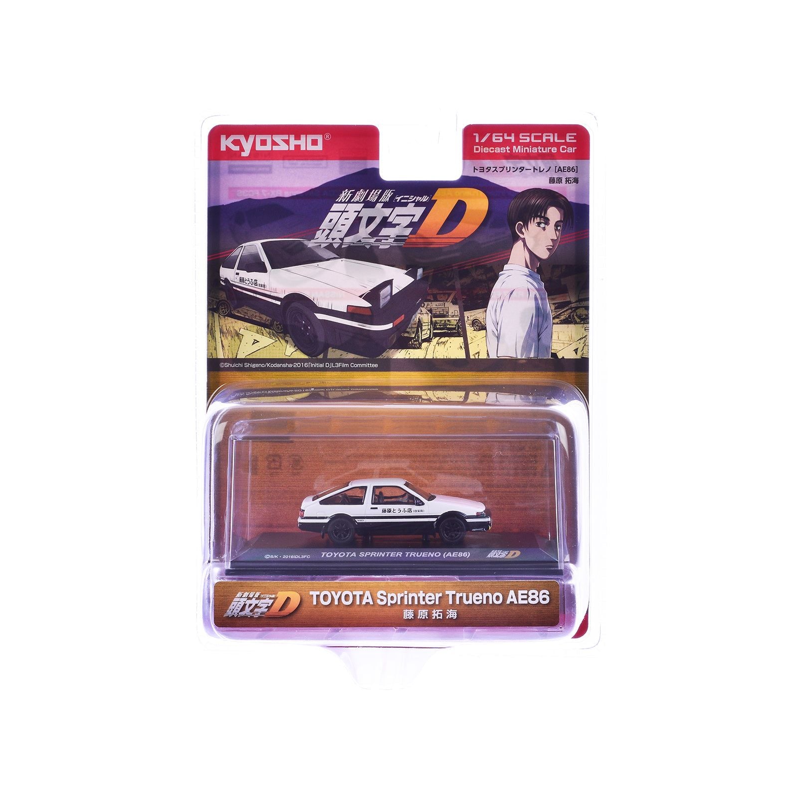 Toyota Sprinter Trueno (AE86) RHD (Right Hand Drive) White and Black with Graphics "Initial D" Manga 1/64 Diecast Model Car by Kyosho