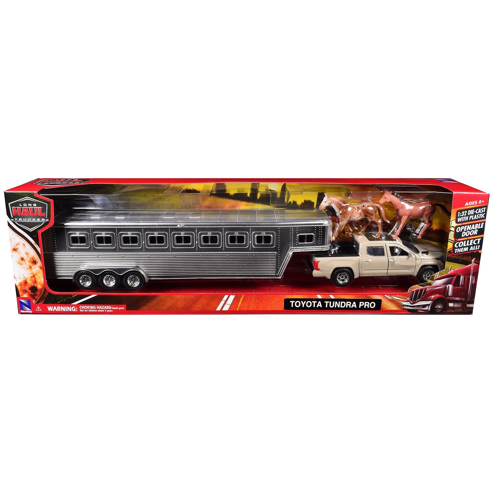 Toyota Tundra Pro Pickup Truck Beige with Horse Trailer Chrome and Horse Figures "Long Haul Truckers" Series 1/32 Diecast Model by New Ray