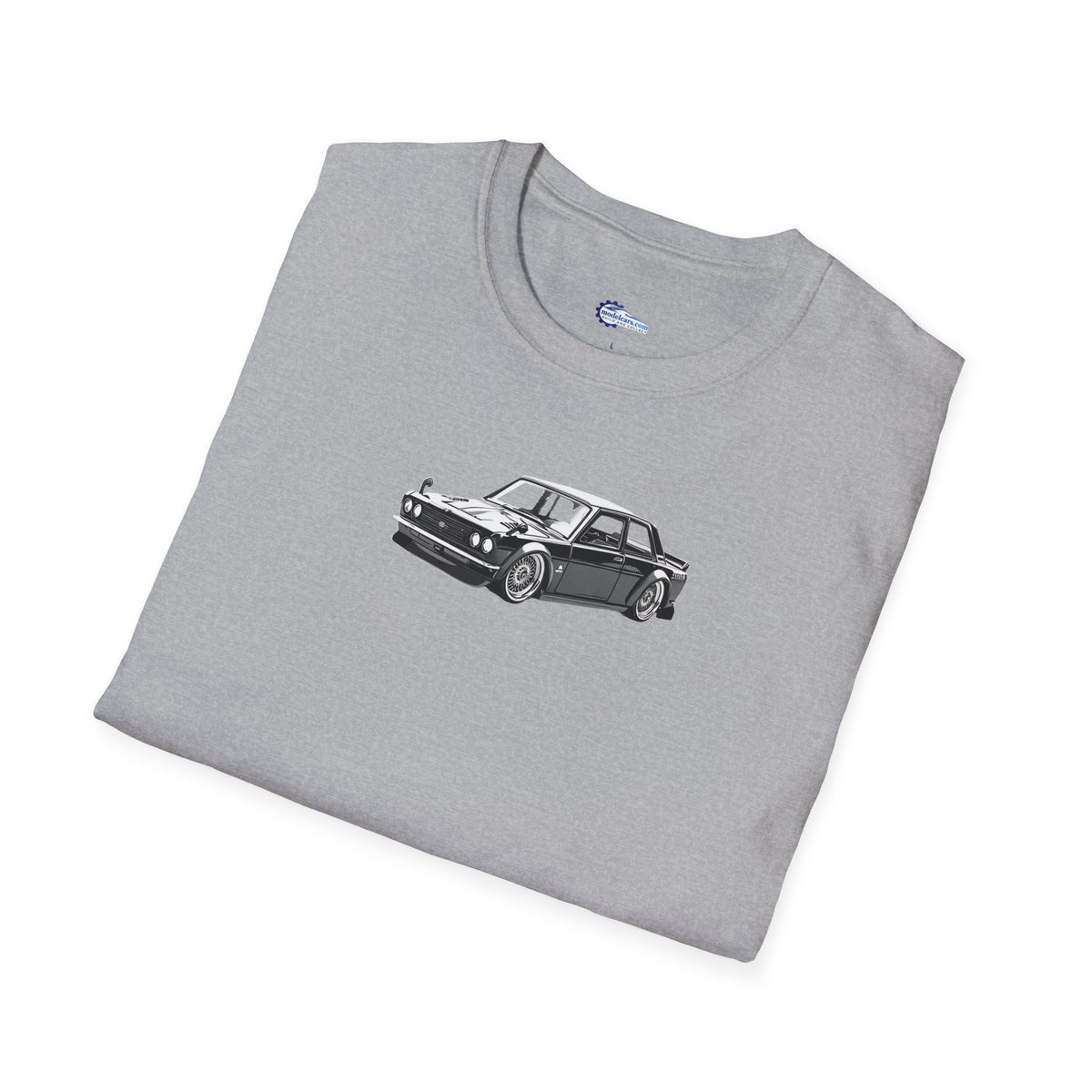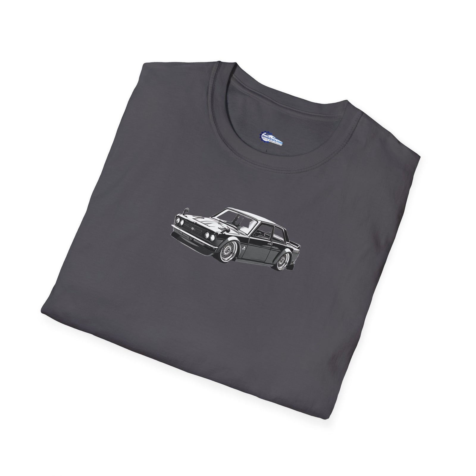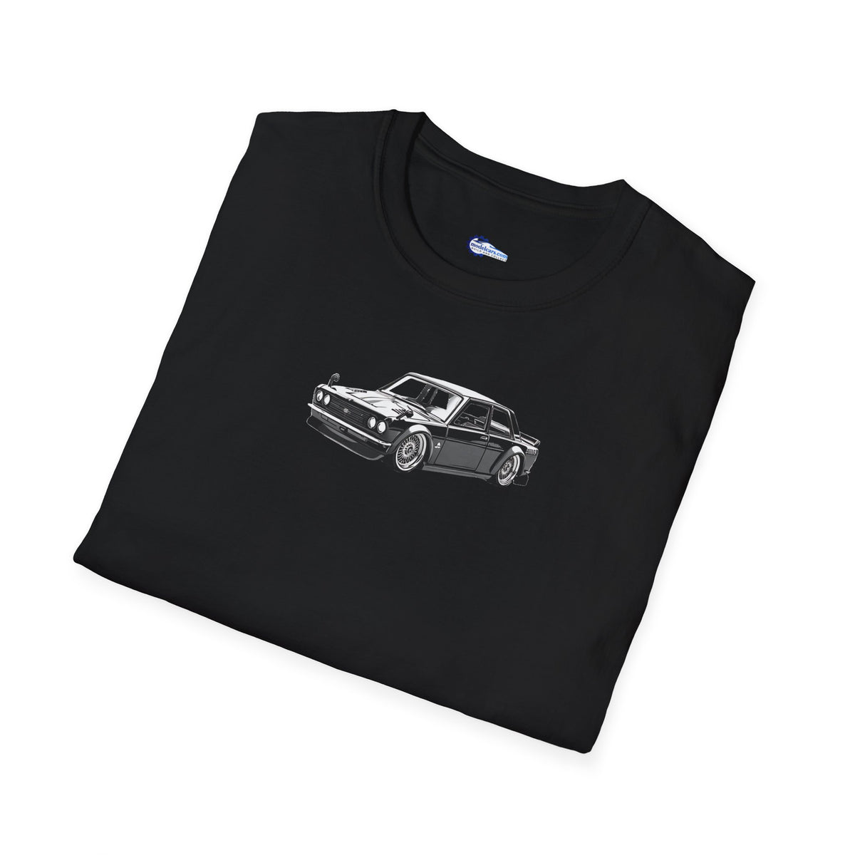Vintage Car Sketch Art 1973 Black Datsun 510 T-Shirt, JDM Retro Car Tee, Classic