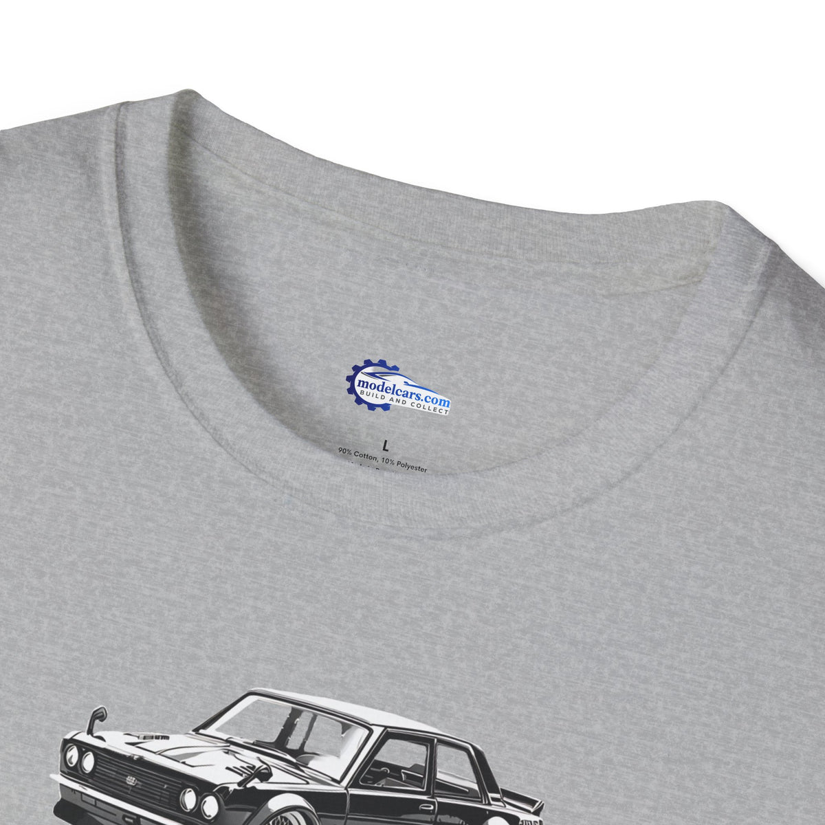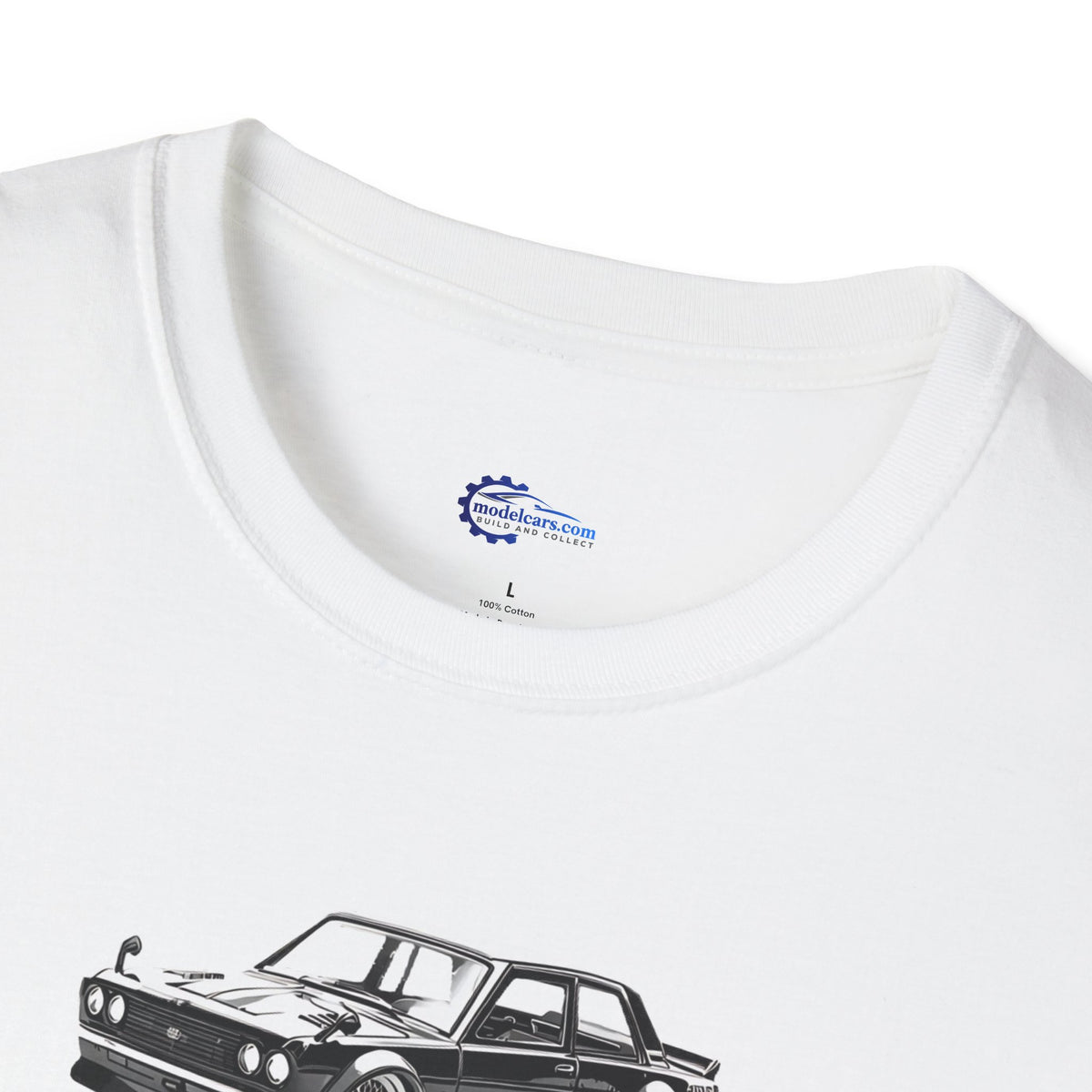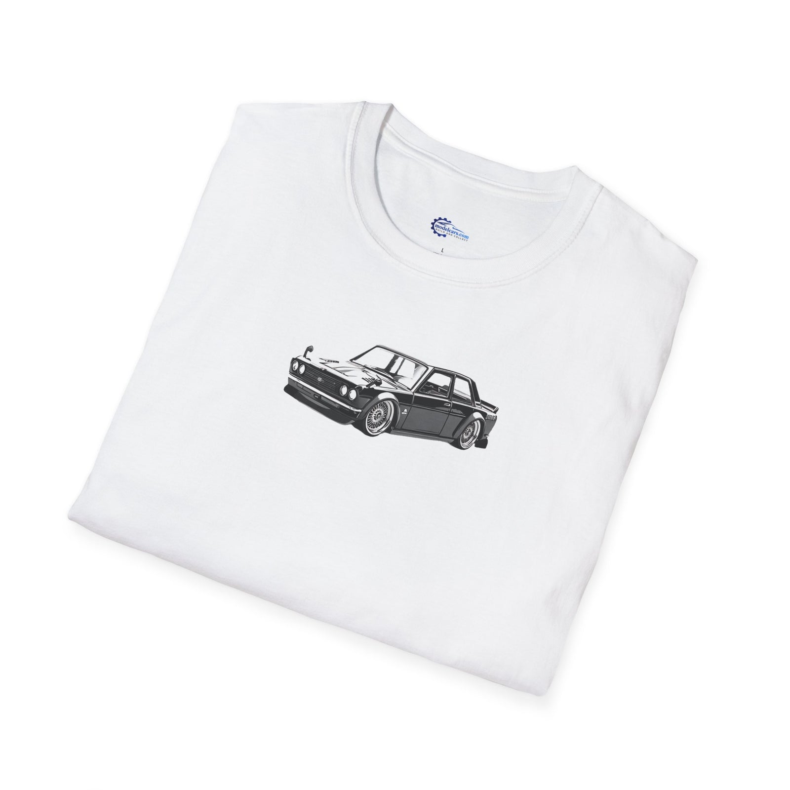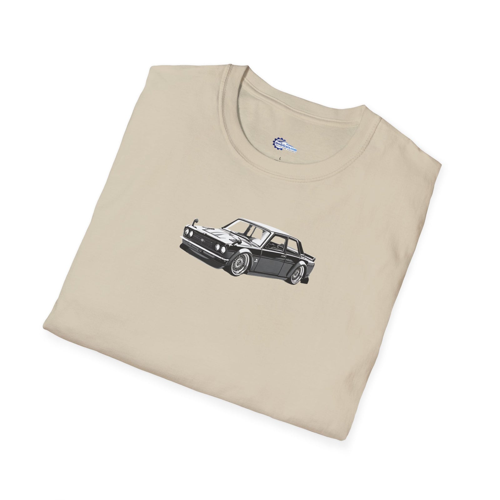 Vintage Car Sketch Art 1973 Black Datsun 510 T-Shirt, JDM Retro Car Tee, Classic