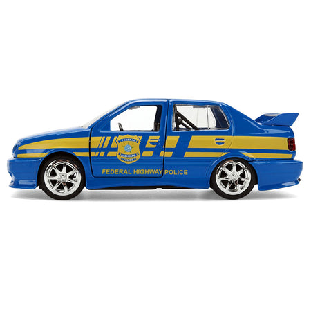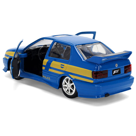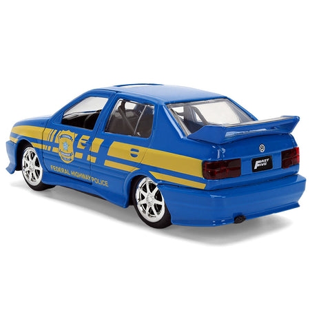 - Brand new 1/32 scale diecast car model of Volkswagen Jetta Police Vehicle "Rio Federal Highway Police" Blue with Yellow Stripes "Fast Five" (2011) Movie "Fast & Furious" Series die cast model car by Jada.